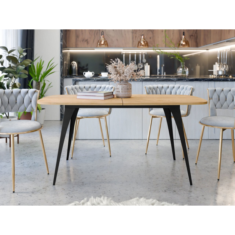 Moderní roztahovací stůl Prizino 160 cm je kus nábytku, který nebudete chtít přikrýt ubrusem. Působivý design zdobí jídelnu a rovněž krásně doplňuje kuchyňskou úpravu. Jednoduchost, kterou představuje, je rafinovaně narušena důmyslně propašovanými detaily. Lehká zaoblení na rozích desky podporují její design a nožičky zužující se směrem dolů jsou zodpovědné za jedinečný charakter nábytku.
