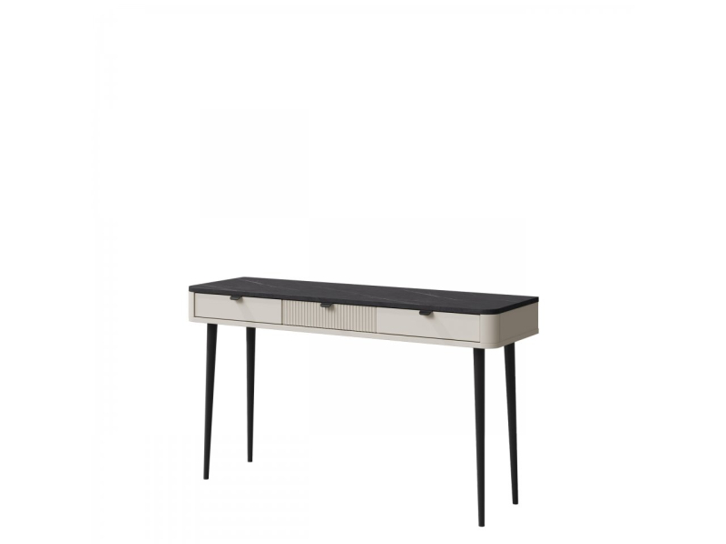 Tři zásuvky pojmou drobnosti rozházené po domě. Konzolový stolek, postavený na vysokých nohách, má lehký a moderní vzhled, zatímco kašmírová přední strana a ozdobné úchytky doplňují jeho elegantní charakter.