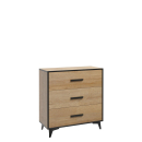Praktické zásuvky, které umožňují oddělit různé věci od sebe, se otevírají pomocí praktických černých úchytek. Nohy jsou vyrobeny ve stejné barvě, což výrazně zjednodušuje čištění pod nábytkem. Celé to vypadá vkusně a černý rám dokonale zdůrazňuje jedinečný charakter této komody.