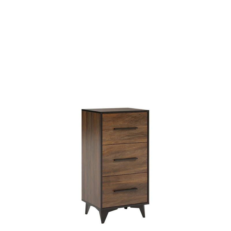 Nábytek má tři praktické zásuvky, perfektní pro třídění spodního prádla nebo ponožek. Dá se do ní dát všechno, co nemá své místo. Jednoduché otevírání zajišťují šikovné černé úchytky. Komoda je umístěna na nožičkách. Svým vzhledem odkazuje na klasické vzory, ale zapadne i do loftových prostor.