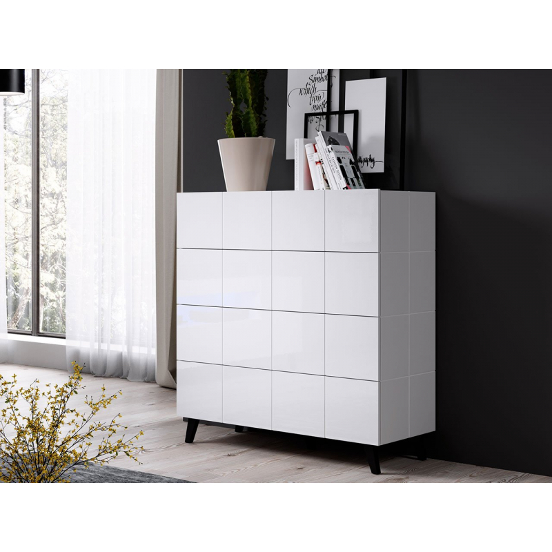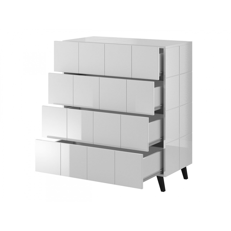 Tento model se od ostatních komod vymyká nadčasovým designem, univerzálními barvami a jemnými frézami vyskytujícími se na jednotlivých prvcích komody. Dokonale se hodí do skandinávského i modernějšího interiéru.