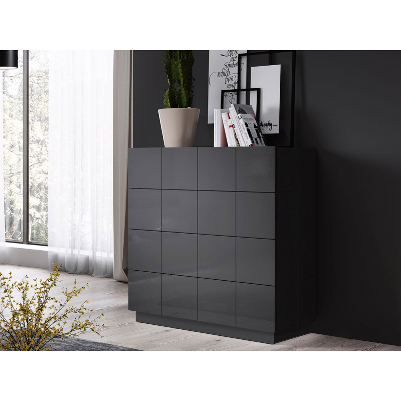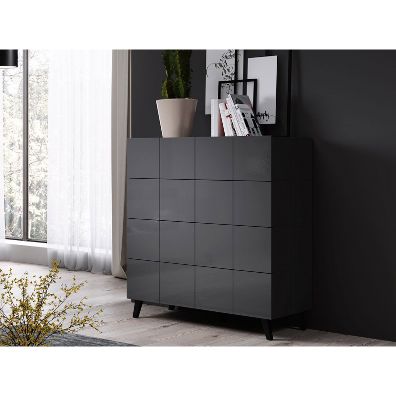 - korpus, front, horní část: lesklá frézovaná deska MDF,
