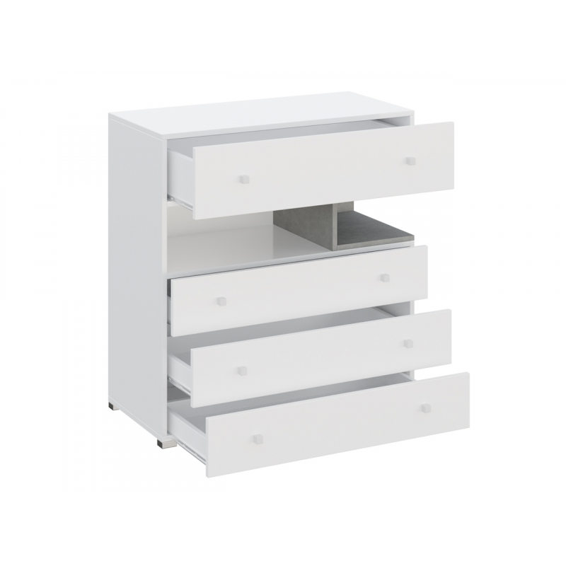 Tento model je vybaven 4 hlubokými zásuvkami, které umožní pečlivou organizaci věcí a polic a umožní zobrazení dekorativních prvků, knih nebo fotografií.