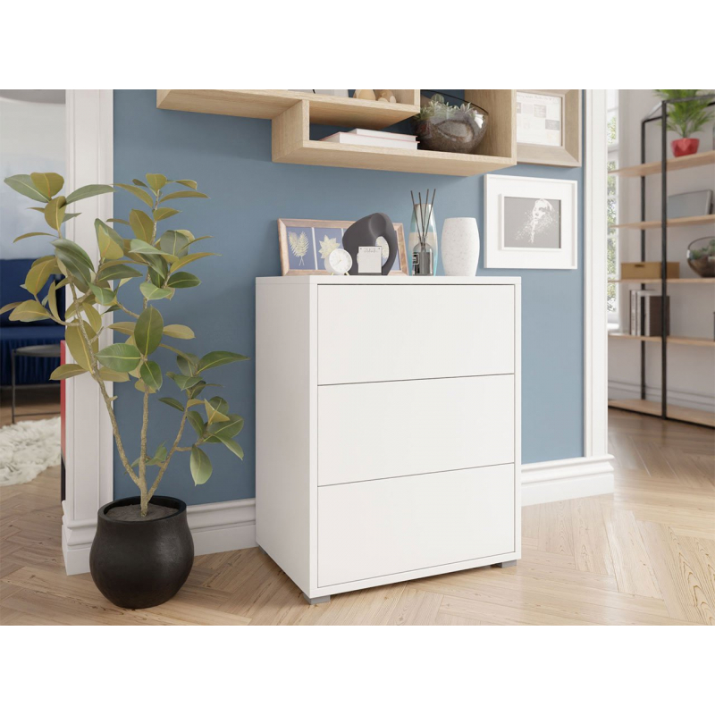 Komoda Alekto je návrh, který lze použít jak v obývacím pokoji, tak v ložnici nebo dokonce v předsíni. Její výhodou jsou tři zásuvky o hloubce 41 cm, které umožňují ukládat větší i menší předměty.