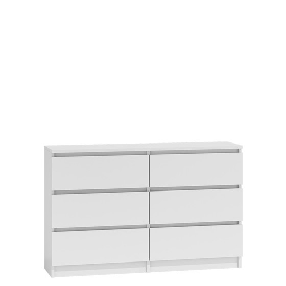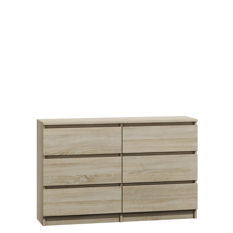 Stylová široká komoda Osko 120 OK6 se zásuvkami efektivně doplní moderní interiér v skandinávském a klasickém stylu. Díky široké škále barev je nábytek ideální jako komoda do ložnice, obývacího pokoje a předsíně. Četné zásuvky, které zaplňují komodu, jsou vybaveny válečkovým vedením, díky čemuž je každodenní používání ještě jednodušší.