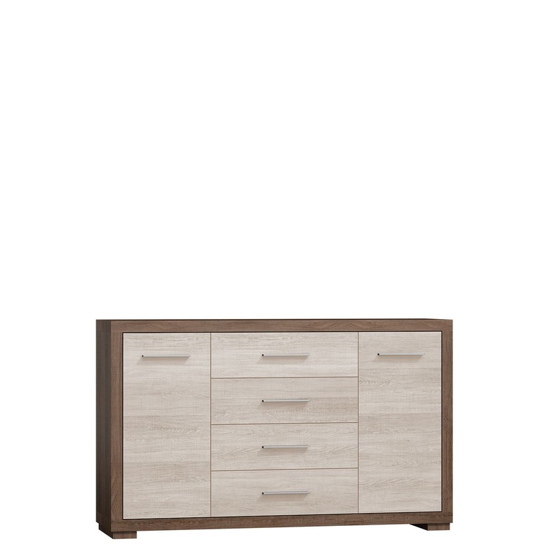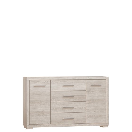 Kelly KL03 je komoda vybavená čtyřmi prostornými zásuvkami s plným prodloužením a dvěma skříňkami, které dokonale třídí oblečení nebo jiné předměty každodenní potřeby.
