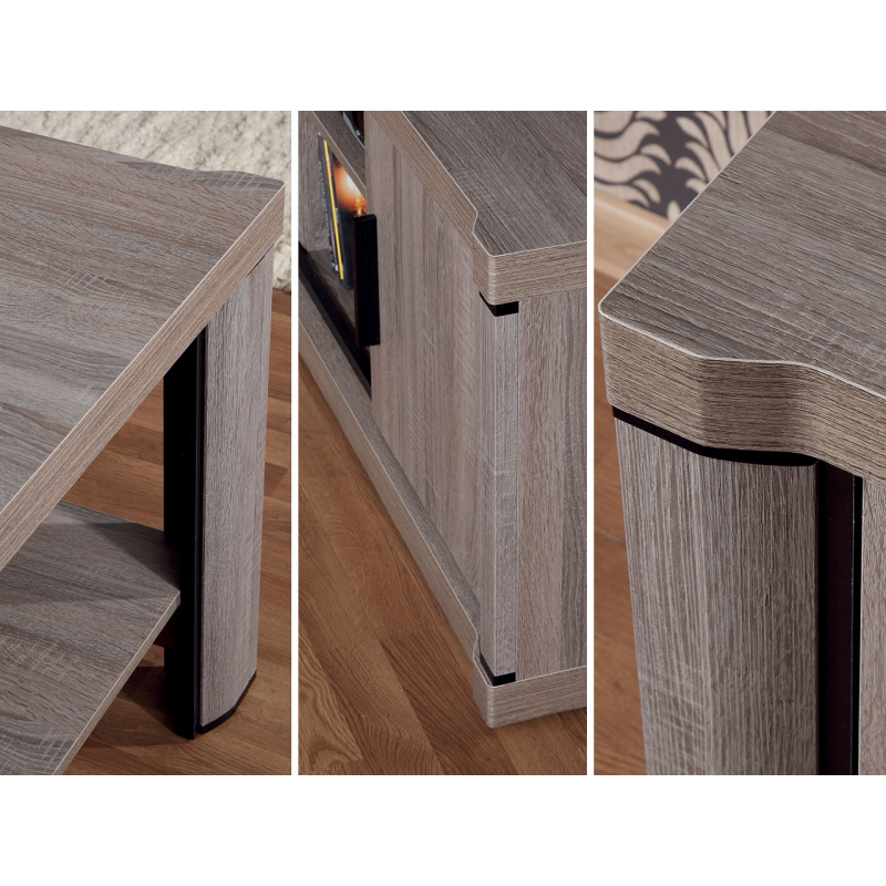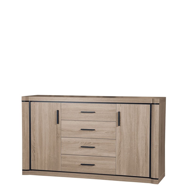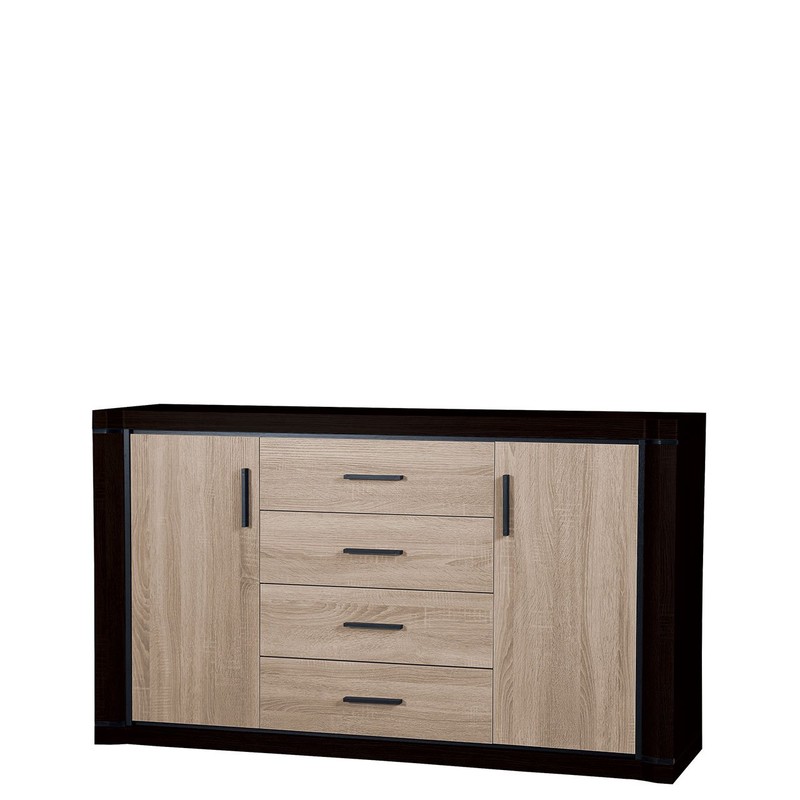 Komoda navíc nabízí dostatek úložného prostoru ve čtyřech zásuvkách, které jsou umístěny ve střední části a dvou skříňkách umístěných po stranách. Komoda je vyrobena z vysoce kvalitních komponentů, zejména laminované desky, a je k dispozici v zajímavých barvách.