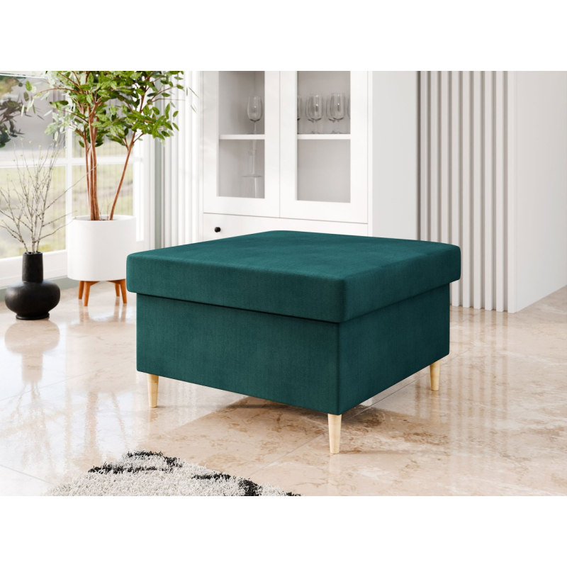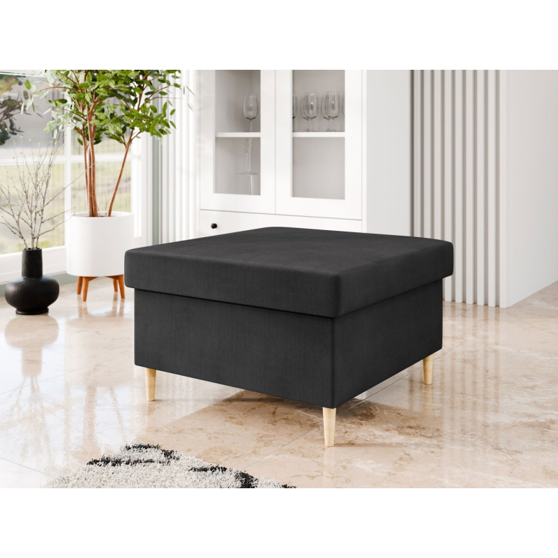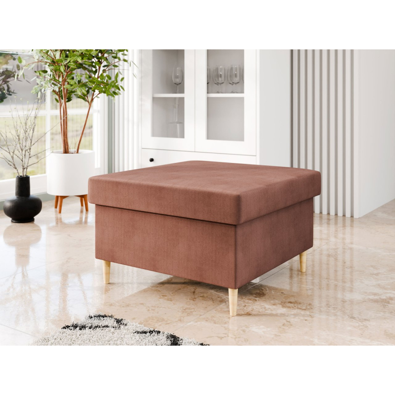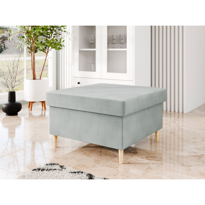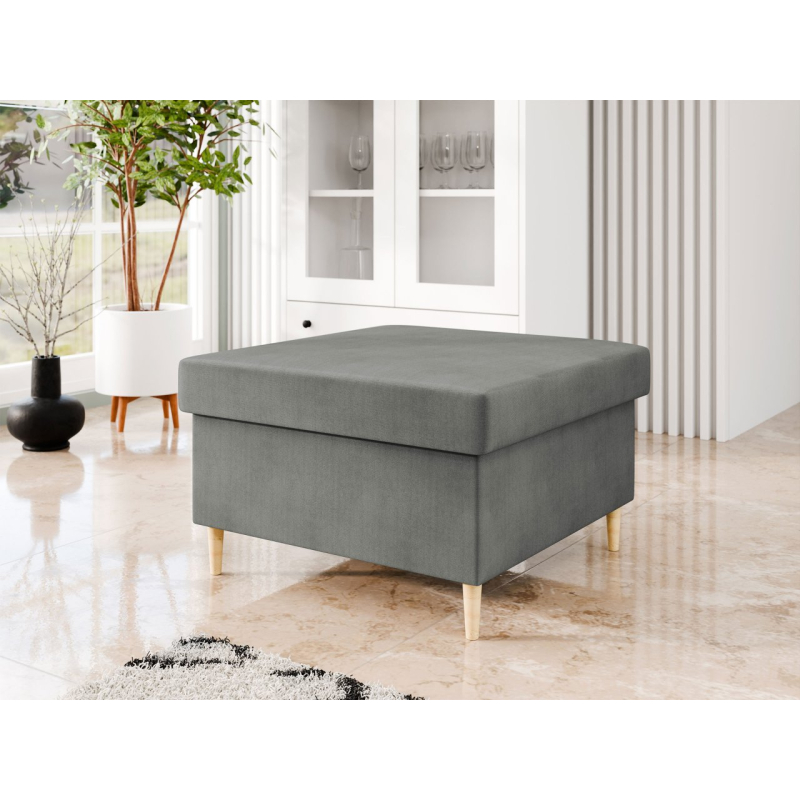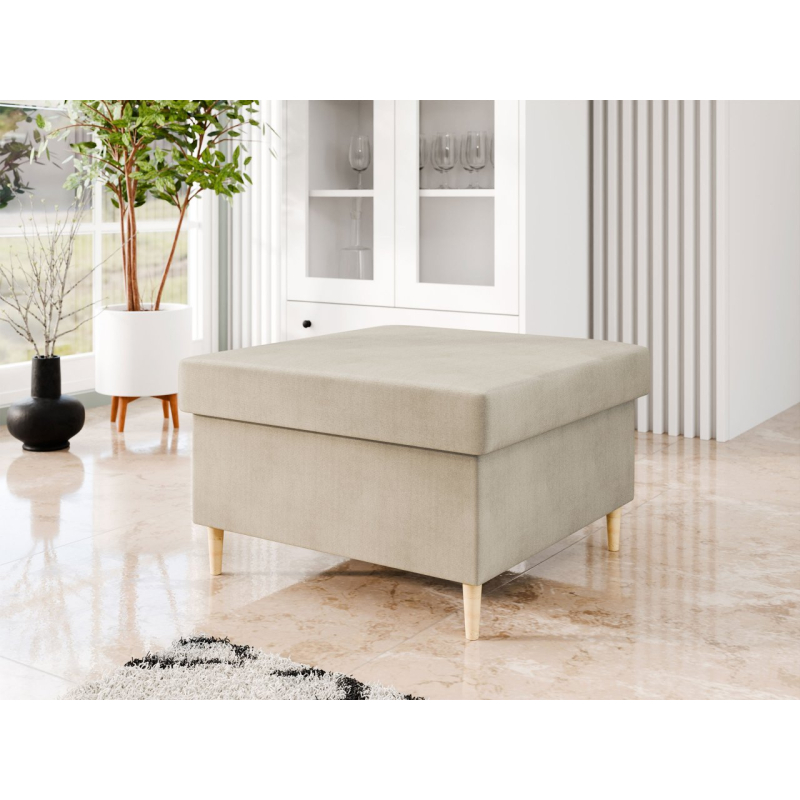 Čalouněná taška na dřevěných nohách má minimalistický design. Jedinečné kouzlo taburetu podtrhuje čalounění. Nábytek je potažen na dotek příjemnou plyšovou látkou s praktickými vlastnostmi. Investujte do tohoto stylového doplňku a užijte si nový rozměr pohodlí!
