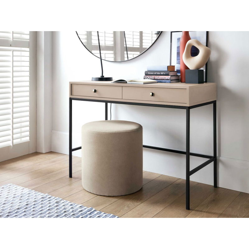 Stylový toaletní stolek Tonkor béžový TT104 vnese do interiéru závan novoty. Jednoduchý tvar nábytku v kombinaci s vkusným barevným provedením podtrhuje jedinečný půvab obývacího pokoje, ložnice nebo předsíně. Tento model dobře poslouží i jako pracovní a studijní stůl. Optimálně dimenzovaná horní deska poskytuje dostatek prostoru pro počítač, knihy a notebooky. Na druhé straně zásuvky poskytují praktický úložný prostor například pro školní potřeby.