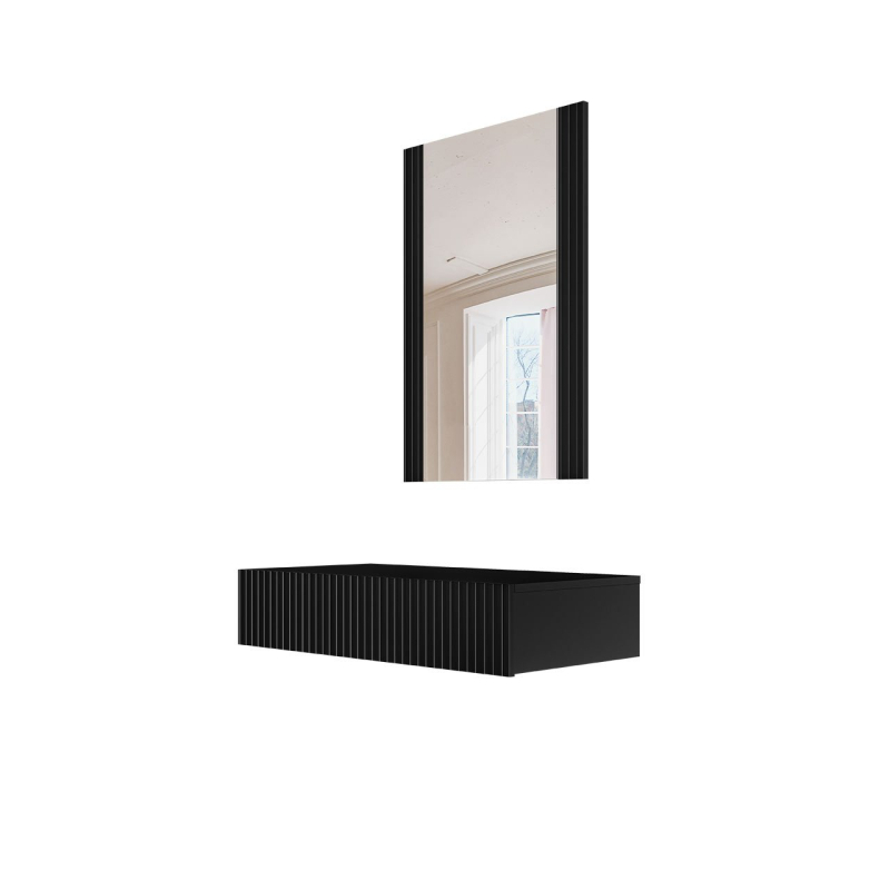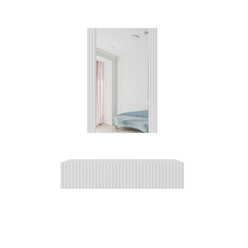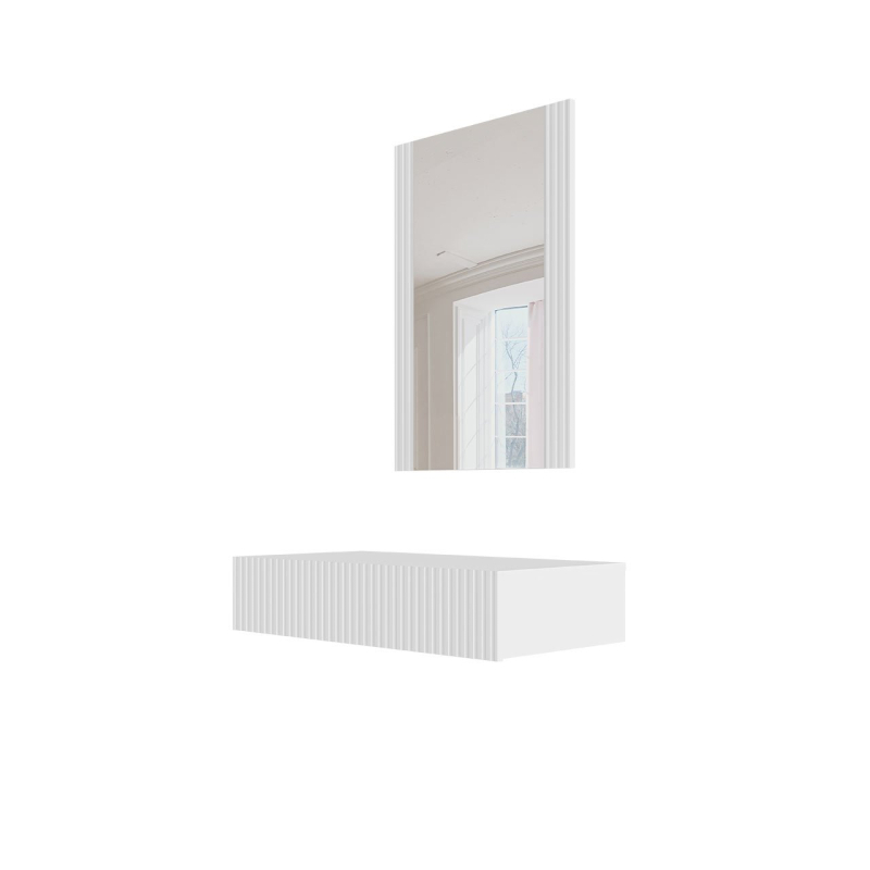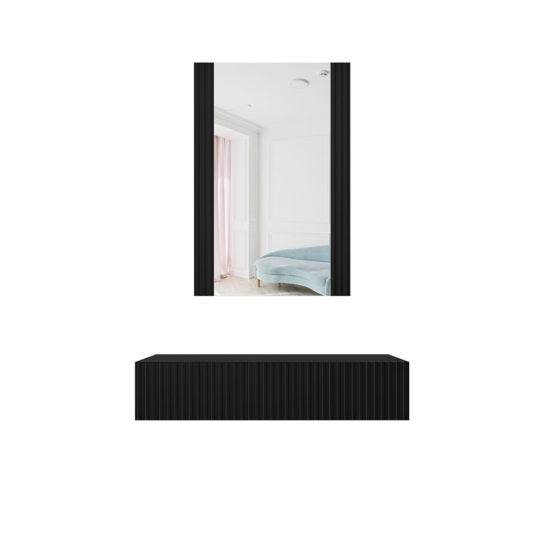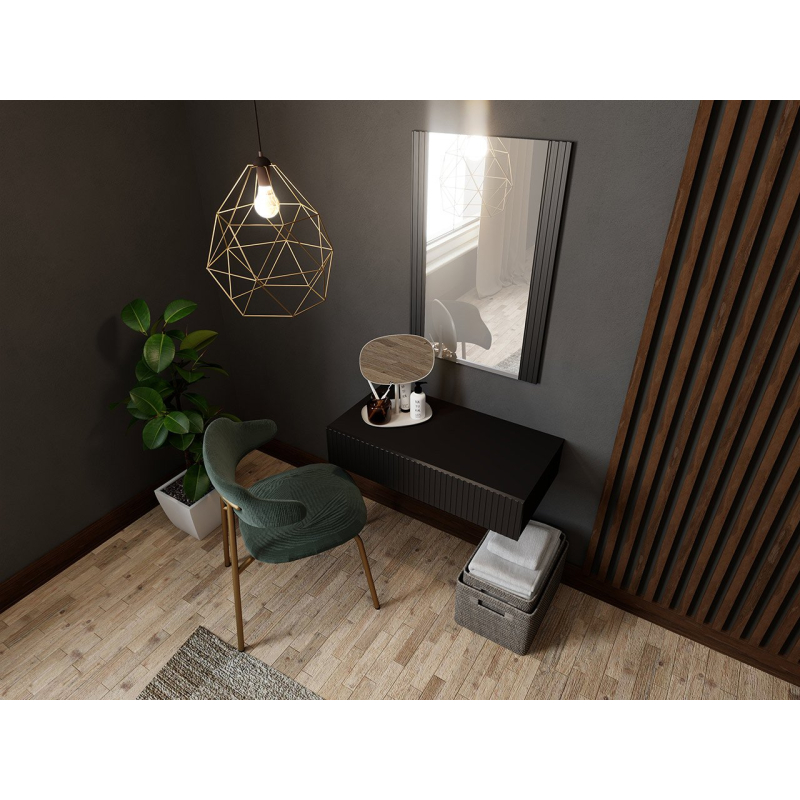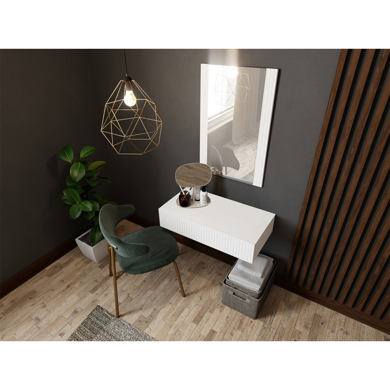 Hlavní předností toaletního stolku na stěnu je velké zrcadlo, které usnadňuje provádění všech úkonů péče o tělo. Na jeho horní část můžete umístit šperkovnici nebo oblíbený parfém.