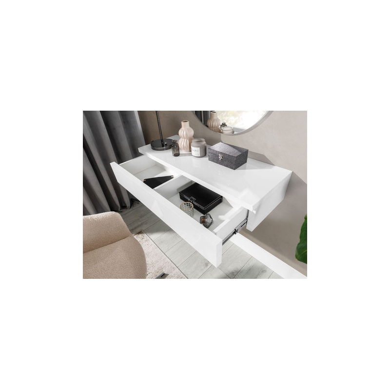 Toaletní stolek nabízí také dostatek úložného prostoru. Zásuvka umožňuje uspořádat kosmetiku, šperky a další potřebné předměty. Díky tomu je vše vždy po ruce a kosmetická deska zůstává čistá a uklizená.