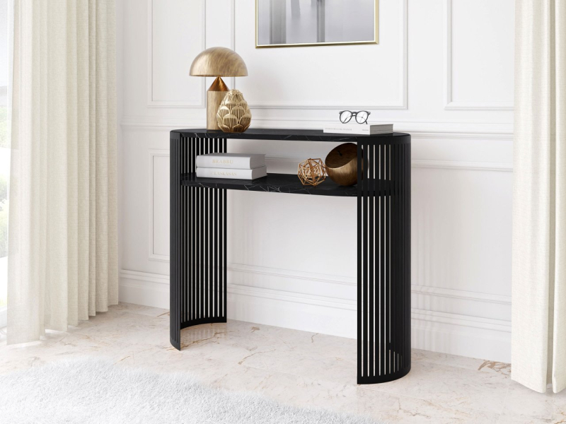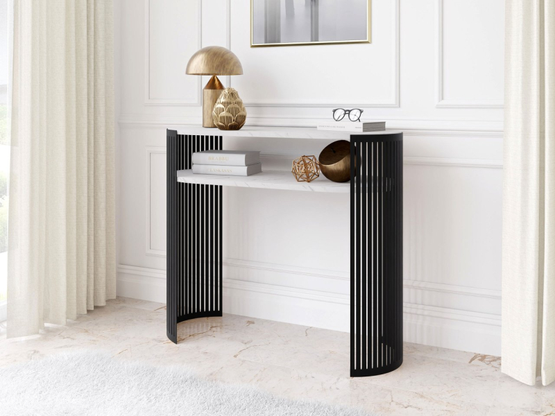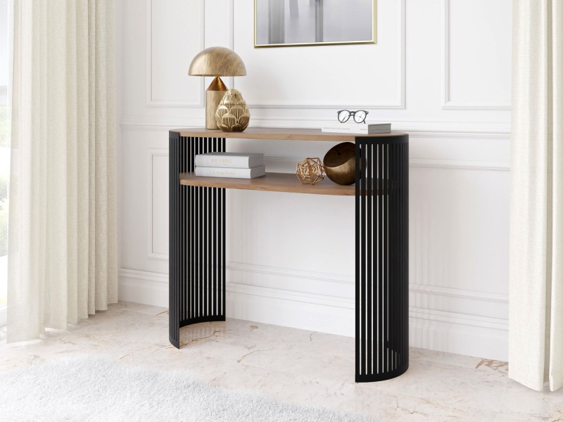 Elegantní akcent oválného konzolového stolku Zinzit dodá charakter každému interiéru. Elegantní design je mimořádně minimalistický a propracované detaily mu dodávají vytříbený styl. Robustní nohy v kombinaci s jednoduchými liniemi desky vytvářejí moderní, ale zároveň nadčasovou kompozici. Konzolový stolek se perfektně hodí do chodby, obývacího pokoje nebo ložnice jako místo pro vystavení dekorací, knih nebo oblíbených doplňků. Tento kus nábytku přitahuje pozornost svým decentním designem.