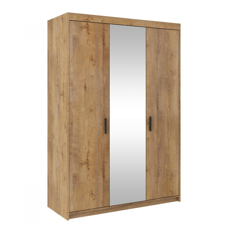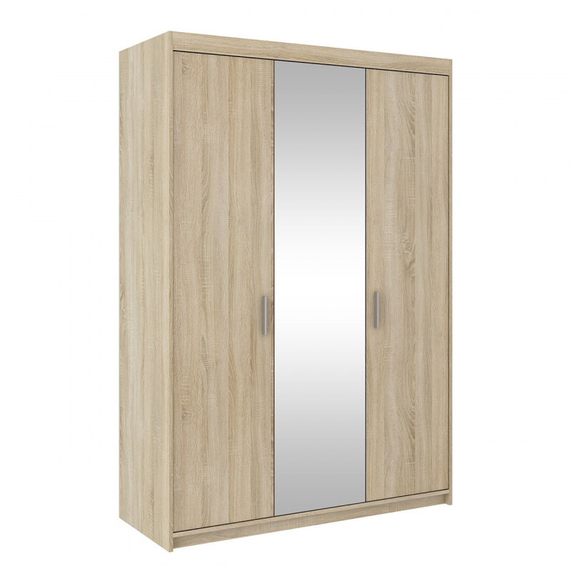 Třídveřová šatní skříň Melen 3D se zrcadlem je model vybavený praktickým policovým systémem a závěsnou tyčí. Část pro zavěšení oblečení zabírá 2/3 celé skříně, což znamená, že budete mít snadný přístup ke svému oblíbenému oblečení. Zbytek skříně lze uspořádat na policích. Šatní skříň je navíc k dispozici v módních barvách, díky kterým ji snadno sladíte s ostatním nábytkem v místnosti. Další výhodou skříně je velké zrcadlo umístěné na středových dveřích. Umožní vám prohlížet si vybrané výtvory a zároveň pozitivně ovlivní prostor a opticky jej zvětší.