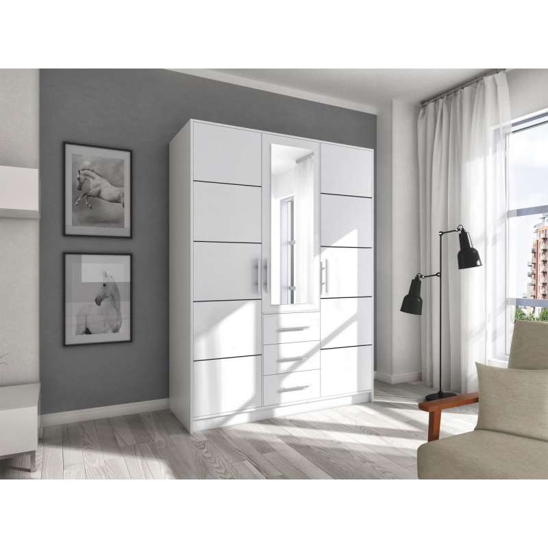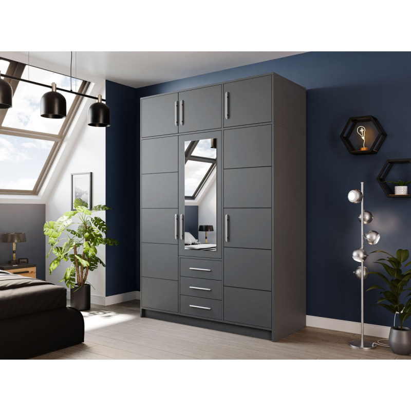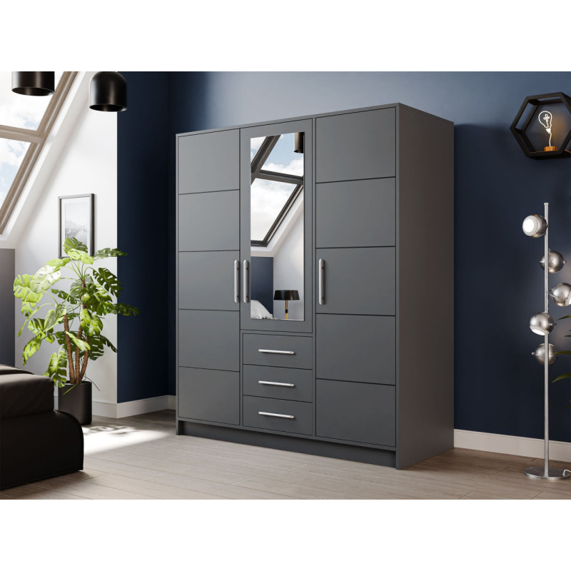 Oceňujete spojení stylu s funkčností? Šatní skříň Lily D3 se zrcadlem je pro vás ideální volbou! Jedná se o jedinečný model, který se vyznačuje nadčasovým designem a praktickými řešeními. Zapadne do každého interiéru a dodá mu moderní vzhled. Zrcadlo umístěné na přední straně nábytku opticky zvětší prostor a dodá jas. Navíc jej můžete využít ke zdokonalování se a výběr toho správného outfitu do práce, školy nebo ven s vašimi blízkými.