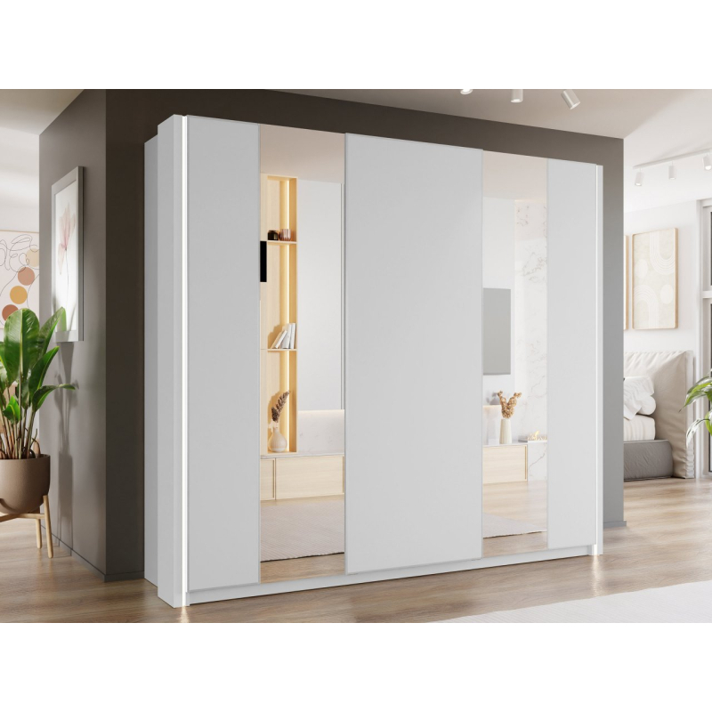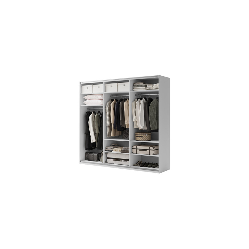 Moderní a především navržená pro usnadnění skladování oblečení, šatní skříň Maxi 3D 250 cm MX06 je nezbytným vybavením každé domácnosti. Díky pečlivě uspořádanému interiéru poskytuje dobré místo pro uložení oblečení, obuvi a doplňků. Chytře uspořádané police umožňují také uspořádání kufrů, tašek a různých typů krabic.