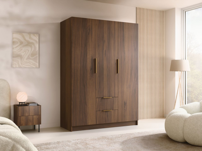 Dobře organizovaný úložný prostor usnadňuje uspořádání oblečení, obuvi a doplňků pro každodenní styl. Podívejte se, jak skříň Cumair I 150 cm se zásuvkami tyto úkoly mistrně plní. Promyšlené uspořádání úložného prostoru poskytuje optimální podmínky pro svetry uložené na policích a košile zavěšené na ramínkách.
