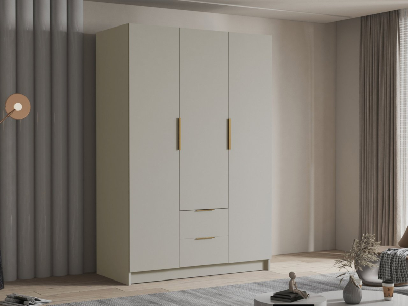 Dobře organizovaný úložný prostor usnadňuje uspořádání oblečení, obuvi a doplňků pro každodenní styl. Podívejte se, jak skříň Cumair I 150 cm se zásuvkami tyto úkoly mistrně plní. Promyšlené uspořádání úložného prostoru poskytuje optimální podmínky pro svetry uložené na policích a košile zavěšené na ramínkách.