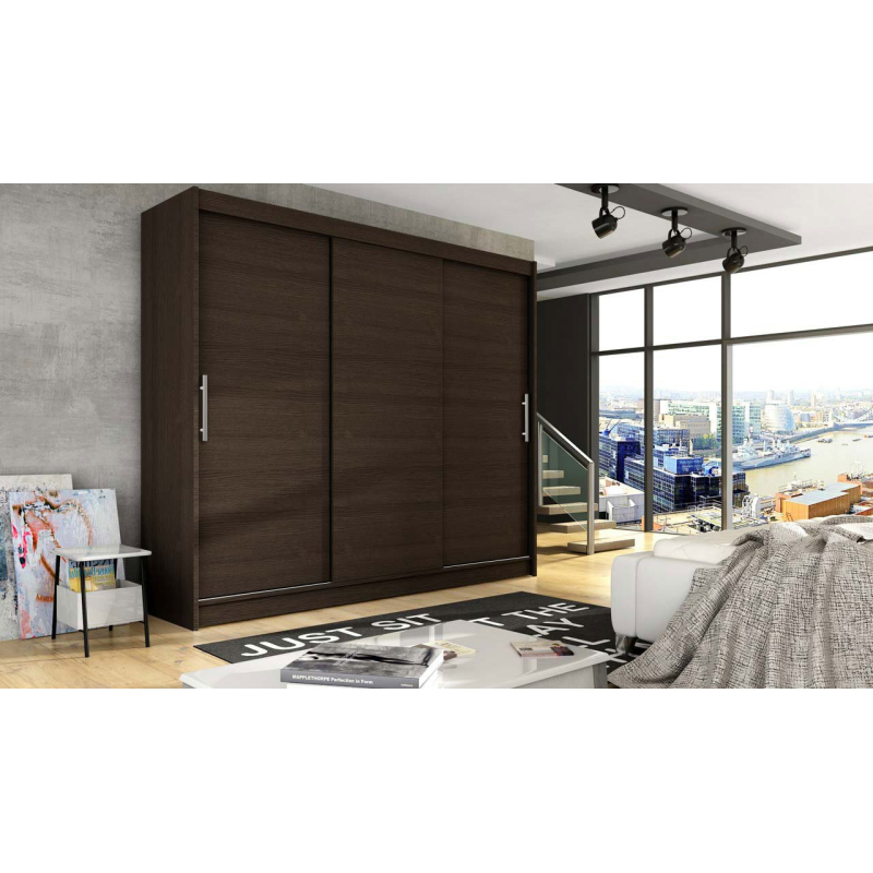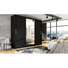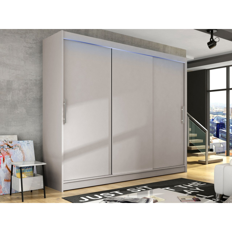 Tato šatní skříň je vybavena praktickým systémem posuvných dveří, který se osvědčí zejména v úzkých místnostech a usnadňuje tak využití interiéru šatní skříně.