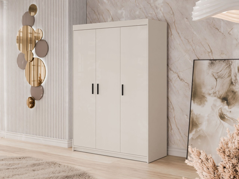 Podívejte se na třídveřovou šatní skříň Melen 3D. Na 2/3 délky skříně je tyč na zavěšení oblečení. Byla zavěšena v optimální výšce, abyste mohli volně a bez pomačkání uložit dlouhé oblečení, tj. večerní šaty nebo zimní kabát. Aby byl prostor ve skříni plně využit, byla nad tyčí umístěna další police. Třetí křídlo skříně tvoří prostorné a hluboké police.
