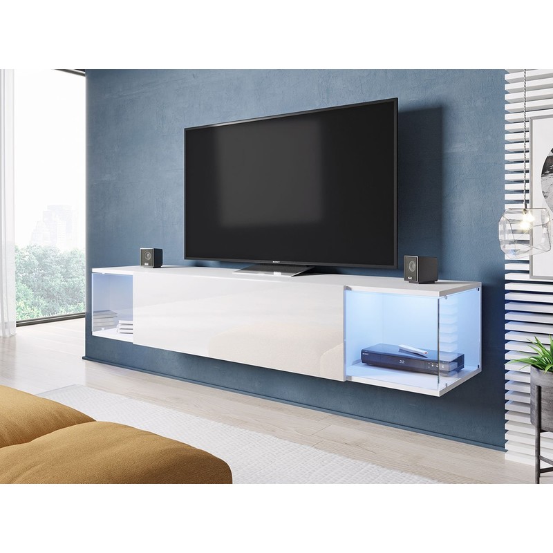 Moderní aranžmá se vyznačují minimalismem a vysokým leskem. Televizní skříňka Zigo Sky dokonale zapadá do tohoto trendu. Skříňka má vysoce lesklý povrch v odstínech bílé a černé. Televizní skříňka má navíc skleněné přední části, které ovlivňují zajímavý vizuální efekt. Obsah skříněk je možné dodatečně zvýraznit pomocí LED osvětlení, které je k dispozici na přání.