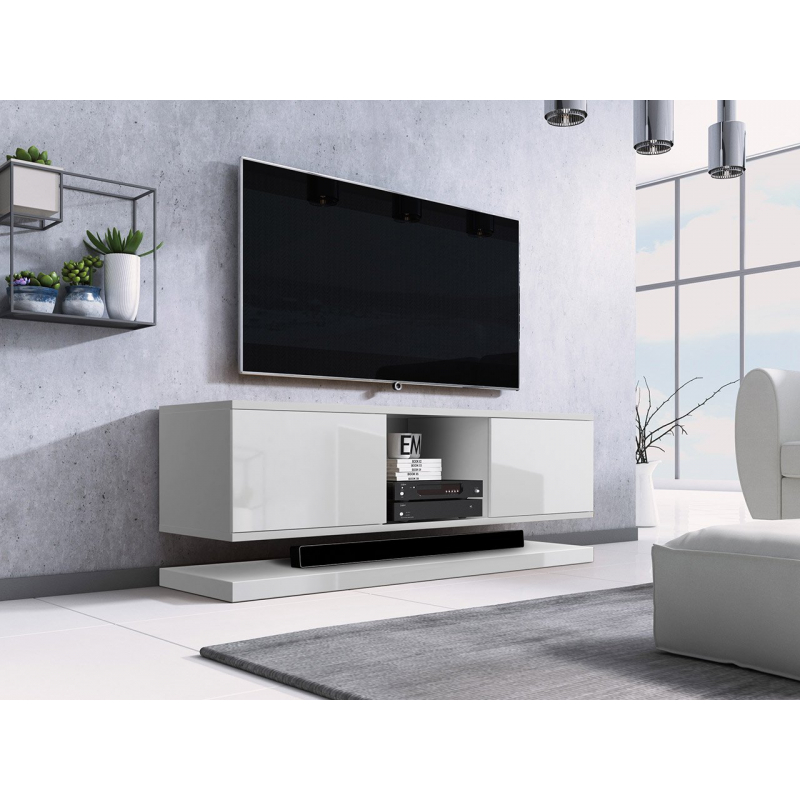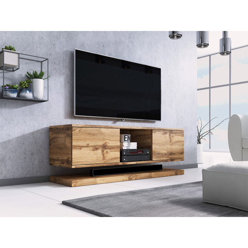 Moderní design televizní skříňky Manitoba lze poznat především podle jejího netradiční konstrukce. Jednoduchý tvar závěsné televizní skříňky byl obohacen o stojací základnu, díky čemuž nábytek vypadá svěže a designově. Prostor mezi skříňkou a základnou může sloužit jako další police pro reproduktory nebo jiné příslušenství, které zvyšují pohodlí při sledování vašich oblíbených filmů a seriálů.