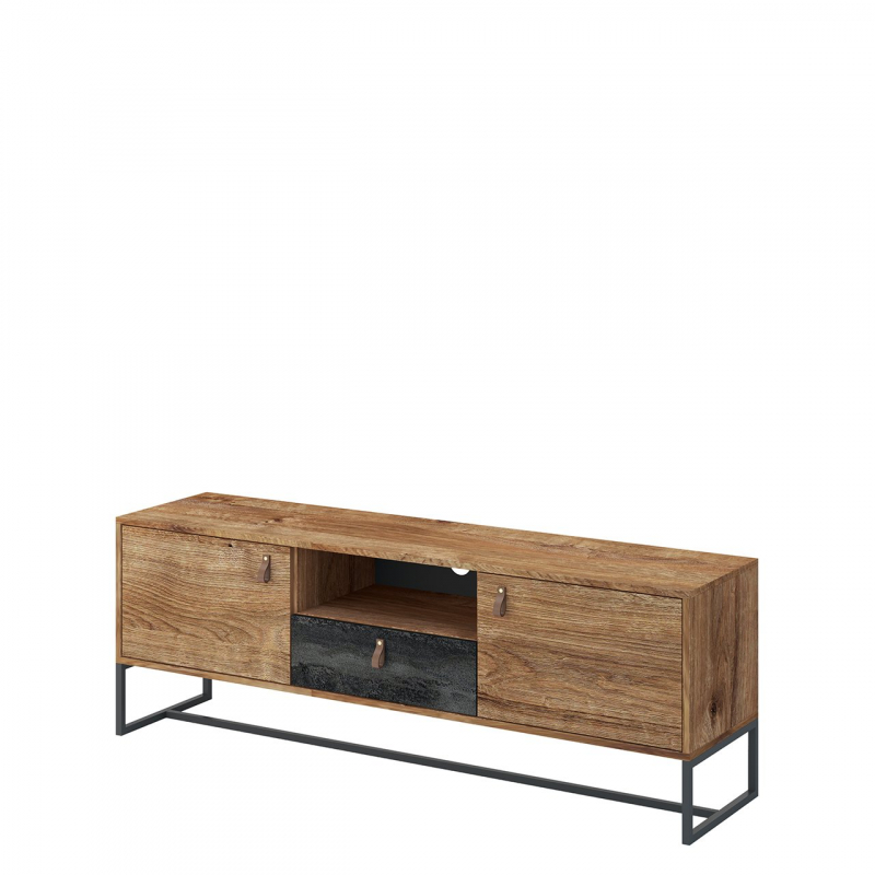 Stylová televizní skříňka Sokrates je stylovou dekorací do obývacího pokoje. Díky přírodním barvám a kovové základně, bude vhodná do interiéru podkroví, jakož i do průmyslové obývacího pokoje. Charakteristickým prvkem televizní skříňky jsou také kožené rukojeti. V praxi usnadňují přístup k příslušenství uloženému uvnitř jednotlivých složek.