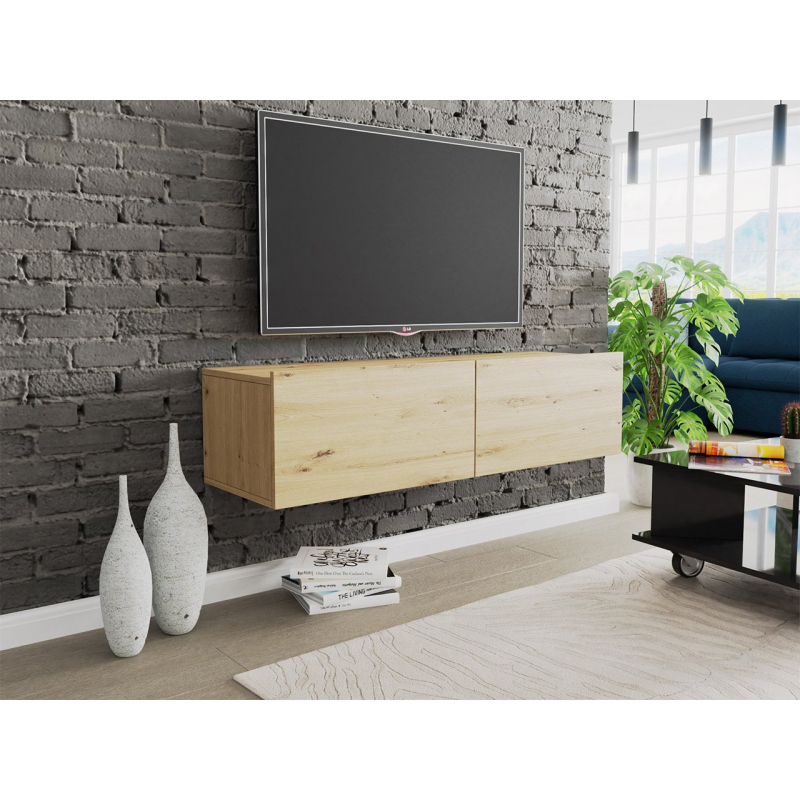 Televizní skříňka Claude je lehkým a praktickým kusem nábytku, který potěší svou univerzálností. Je vybavena dvěma dolů otevíratelnými skříňkami a širokou stolovou deskou. Televizní skříňka Claude dokonale skryje rozvody, udrží zařízení v pořádku a umožní vám uložit ty nejnutnější věci. Byla vyrobena v univerzálních barvách s vysoce kvalitními materiály, které zajistí bezchybný vzhled nábytku na mnoho let.