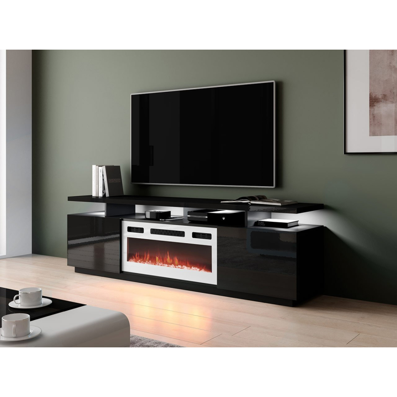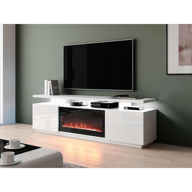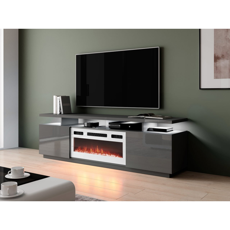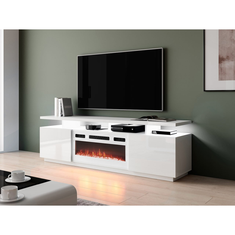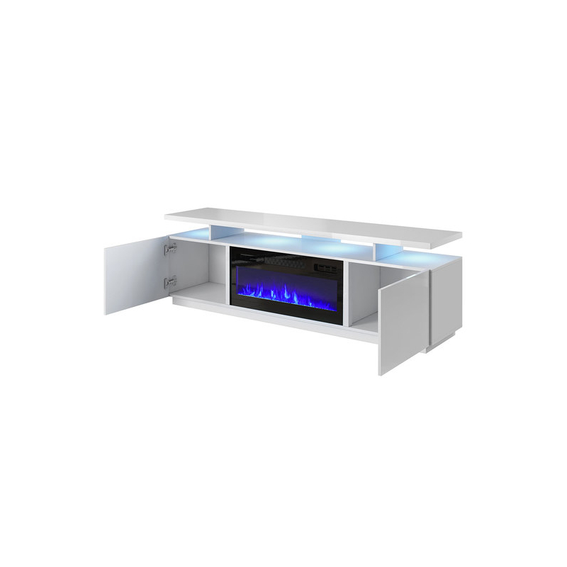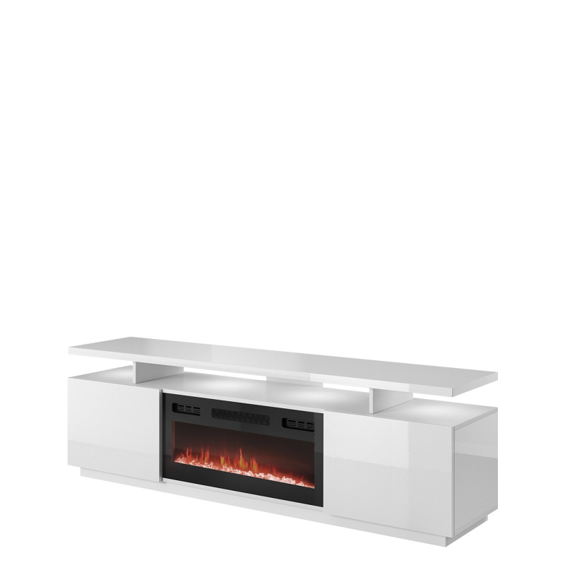 TV skříňka Aniceto s krbem je prostě úžasná. Křišťálově tvarované ohniště, skryté za tvrzeným sklem, dokonale zahřeje váš interiér. Díky jemnému světlu může tento kus doplnit mnoho stylů a interiérů. Krb má nastavitelnou funkci vytápění (18 – 35 stupňů Celsia). Dodává se is dálkovým ovládáním.