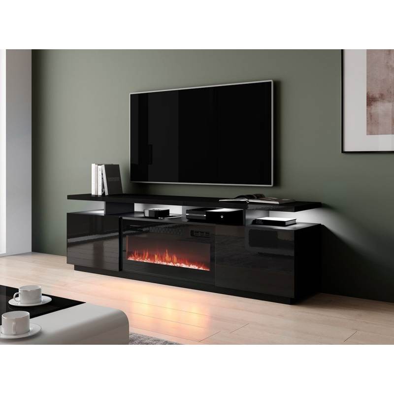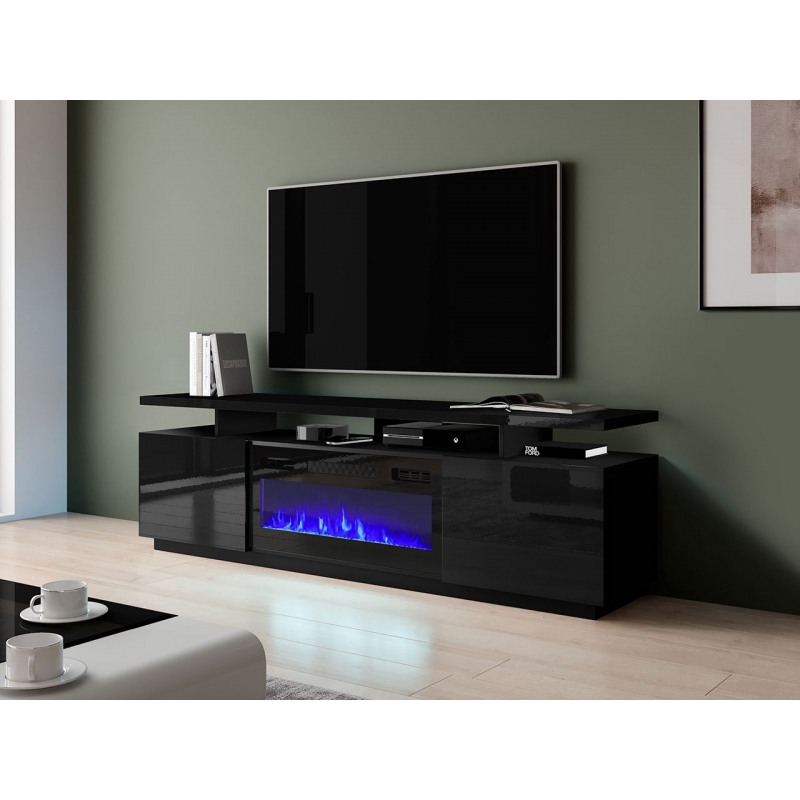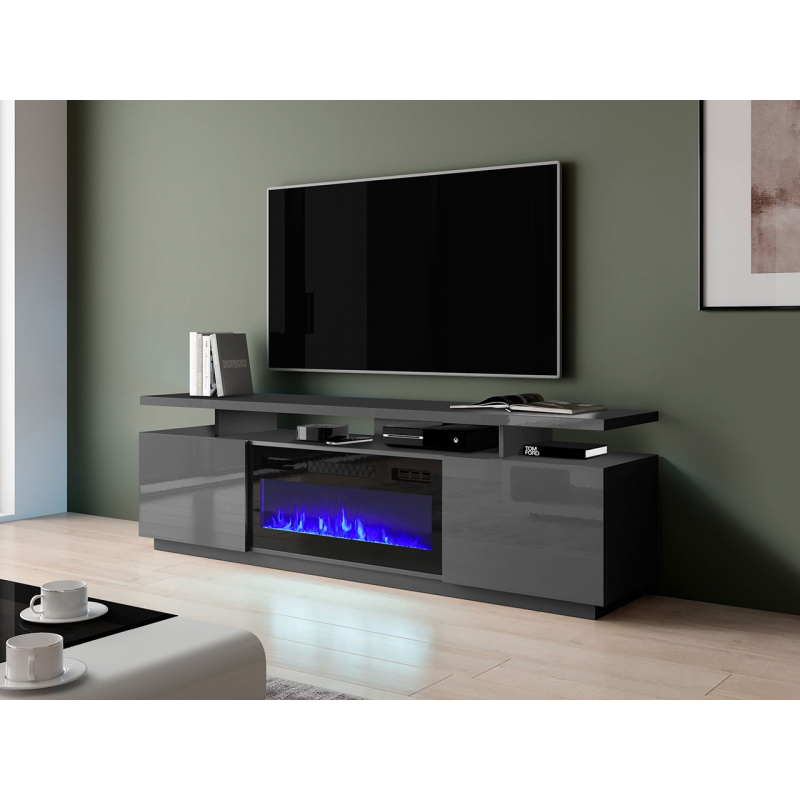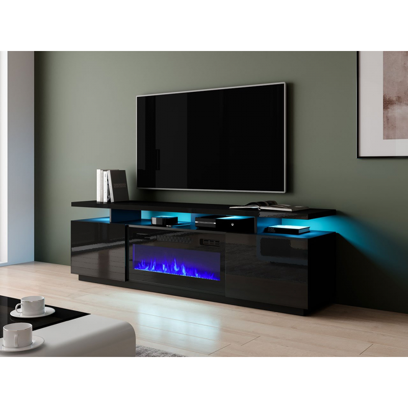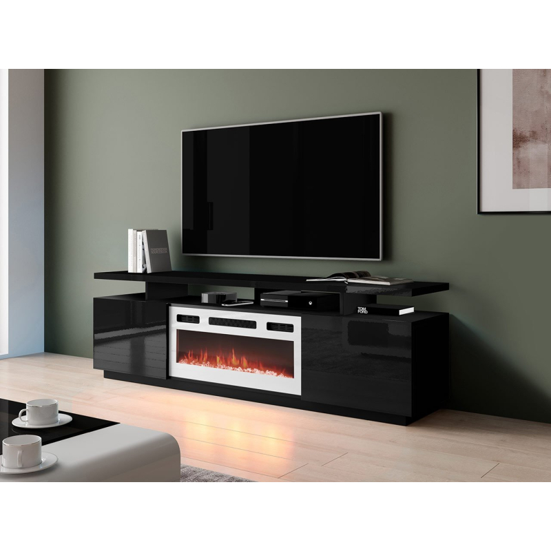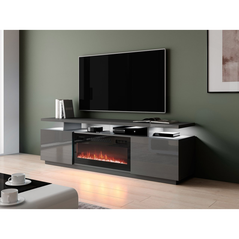 TV skříňka Aniceto s krbem je prostě úžasná. Křišťálově tvarované ohniště, skryté za tvrzeným sklem, dokonale zahřeje váš interiér. Díky jemnému světlu může tento kus doplnit mnoho stylů a interiérů. Krb má nastavitelnou funkci vytápění (18 – 35 stupňů Celsia). Dodává se is dálkovým ovládáním.