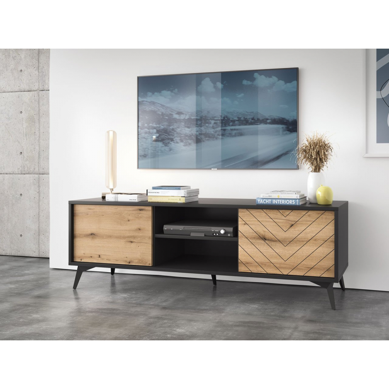 Obývací pokoj je srdcem každé domácnosti. Zde vaši hosté tráví většinu času. Proto se obývacímu pokoji věnuje tolik pozornosti. Moderní a jedinečný nábytek, který upoutá pozornost, je stále častější volbou. TV skříňka Namiro NRTV154 bude právě takovým modelem. Jedinečný design, černé nožky s charakterem a mnoho dalšího! Má dvě prostorné skříňky, které můžete využít jako místo pro knihy, filmy, sady nádobí, vonné svíčky... mohli byste pokračovat dál a dál.