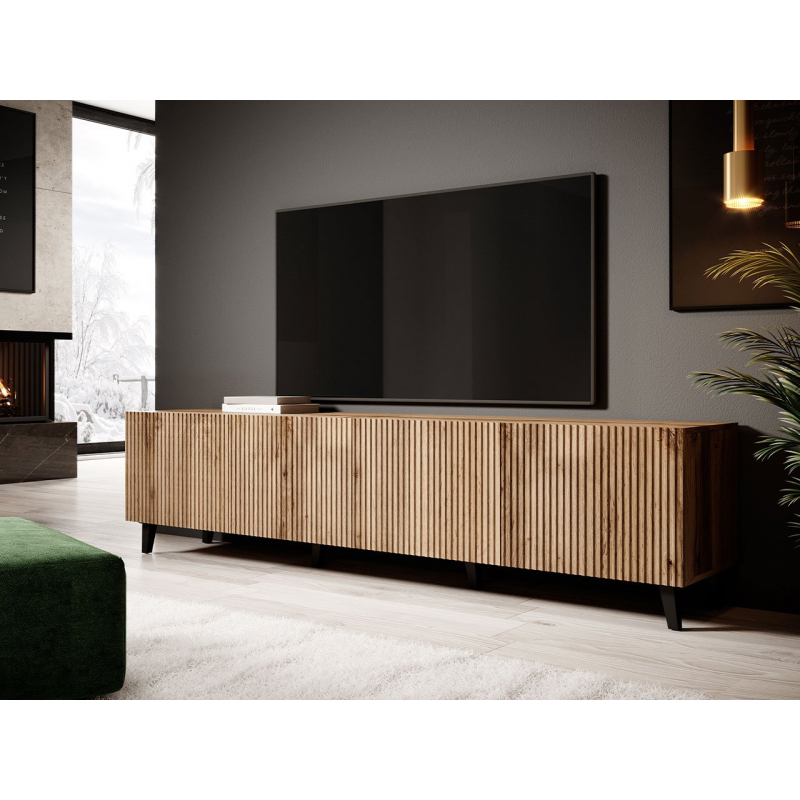 Ideální místo pro večerní odpočinek u oblíbeného seriálu nebo filmu by mělo být vybaveno víceúčelovým nábytkem. Právě takovou nabídkou je televizní skříňka Tilderi 200. Díky její velké ploše si můžete dovolit televizor na míru pro vaše domácí kino. Interiér tohoto modelu navíc nabízí dostatek úložného prostoru.