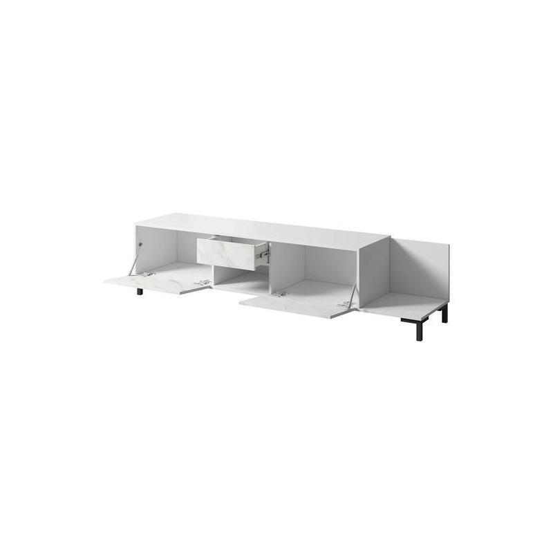 Elegantní TV skříňka Sopeleto podtrhuje elegantní charakter uspořádání televizního prostoru v obývacím pokoji. Kombinace jednoduchého tvaru s minimalistickou formou je doplněna těmi nejmódnějšími barvami. Čelní strany bez úchytek jsou dalším prvkem podporujícím estetiku nábytku.