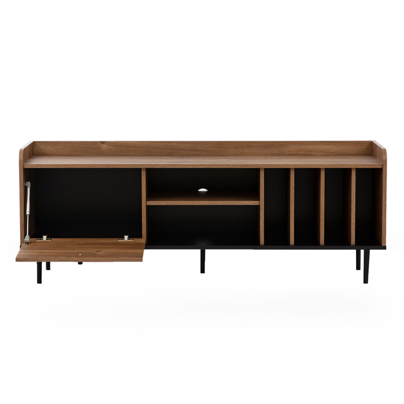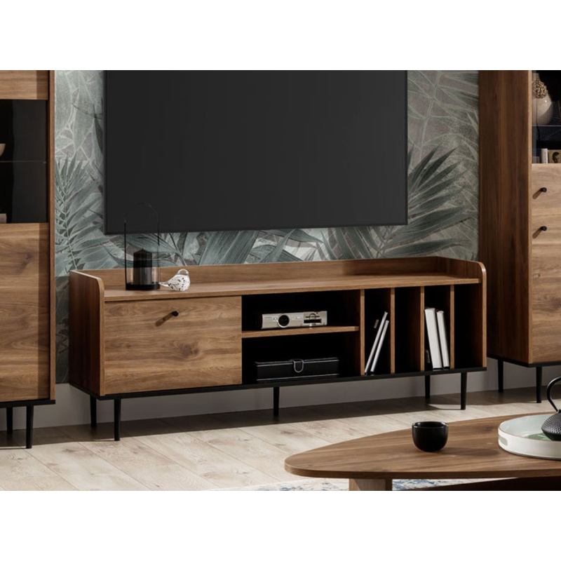 Tato varianta je vyrobena z robustních materiálů. Úchyty a nohy z kovu dokonale doplňují celek. Skříň RTV je také vybavena dvířkami s měkkým zavíráním a plynovými vzpěrami.