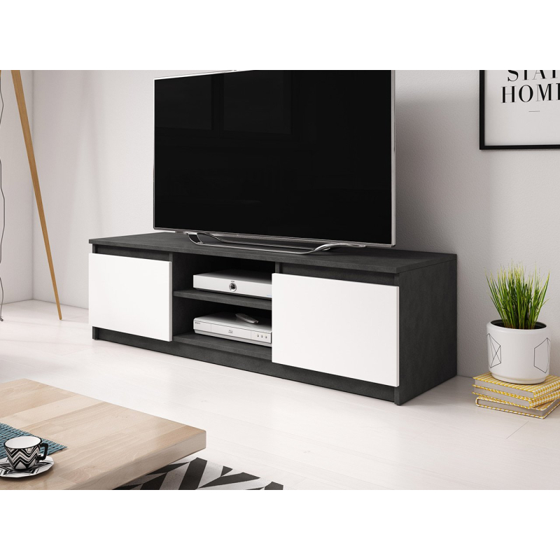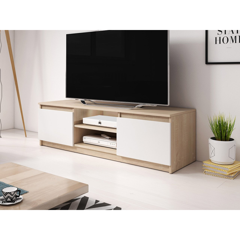 Tento model má prostorné police. Dvě z nich jsou schované za dveřmi, zatímco zbývající jsou ideálním místem pro multimediální zařízení, stolní hry nebo drobné dekorace. Absence úchytek dodává nábytku moderní charakter. Skříň RTV se vyznačuje zajímavými barevnými kombinacemi. To vám umožní sladit ji s mnoha aranžmá.