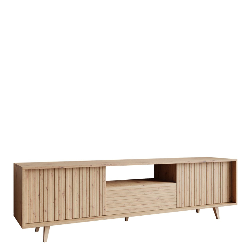 Neutrální charakter TV skříňky Trikso 2K1SZ dokonale zapadá do designu skandinávských interiérů. Barvy inspirované přírodou jsou také dokonalým doplňkem obývacího pokoje v moderním stylu. Jednoduchost nábytku podtrhují jeho geometrické tvary a jeho kouzlo umocňují symetrické drážky na čelech.
