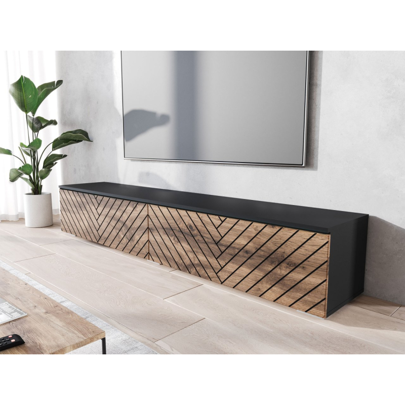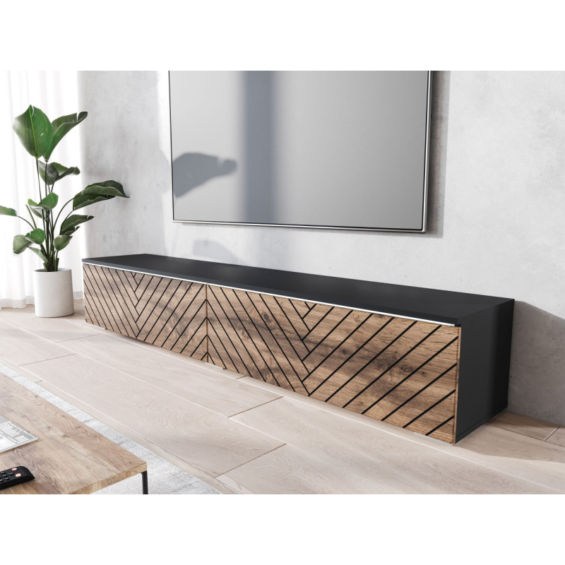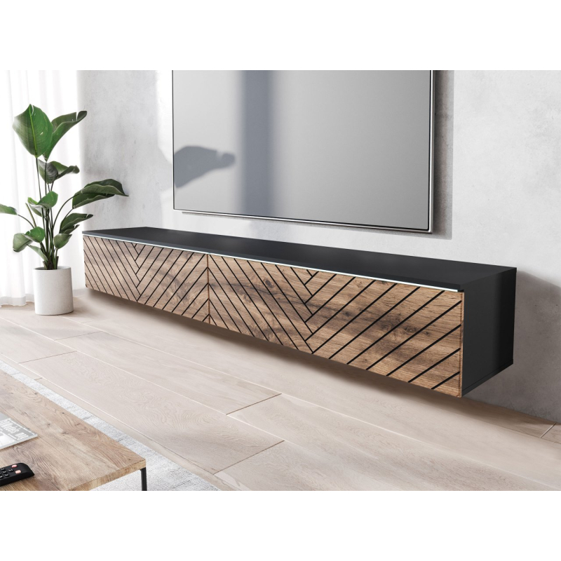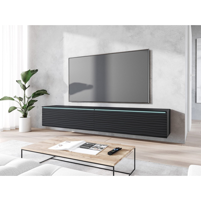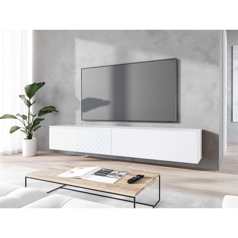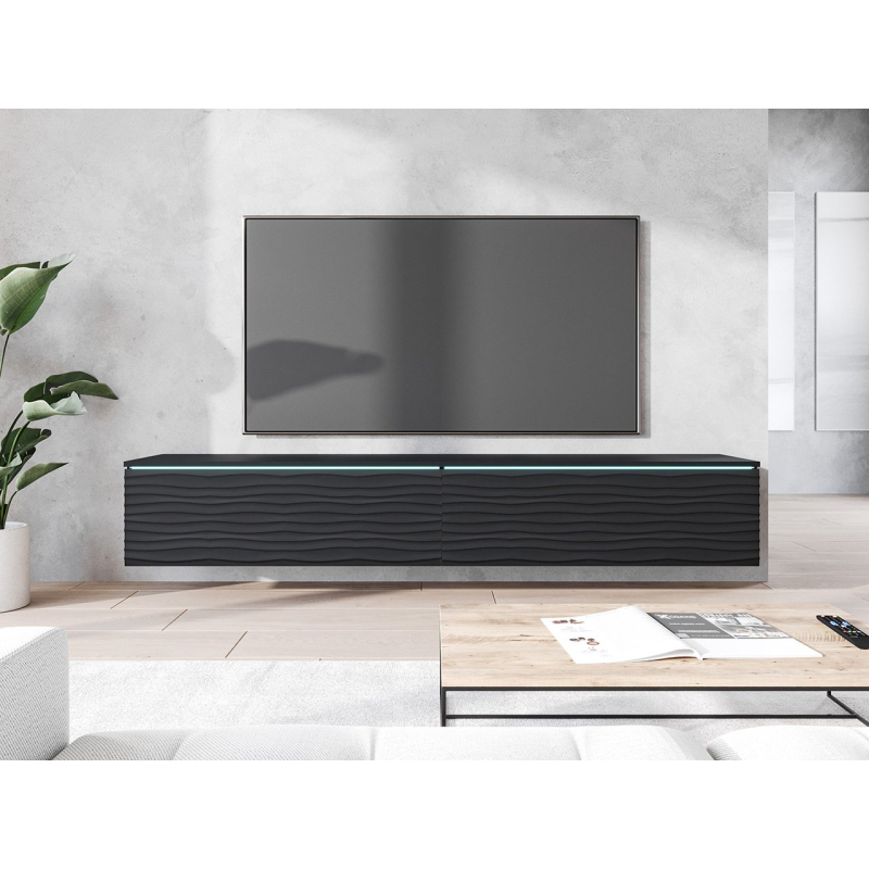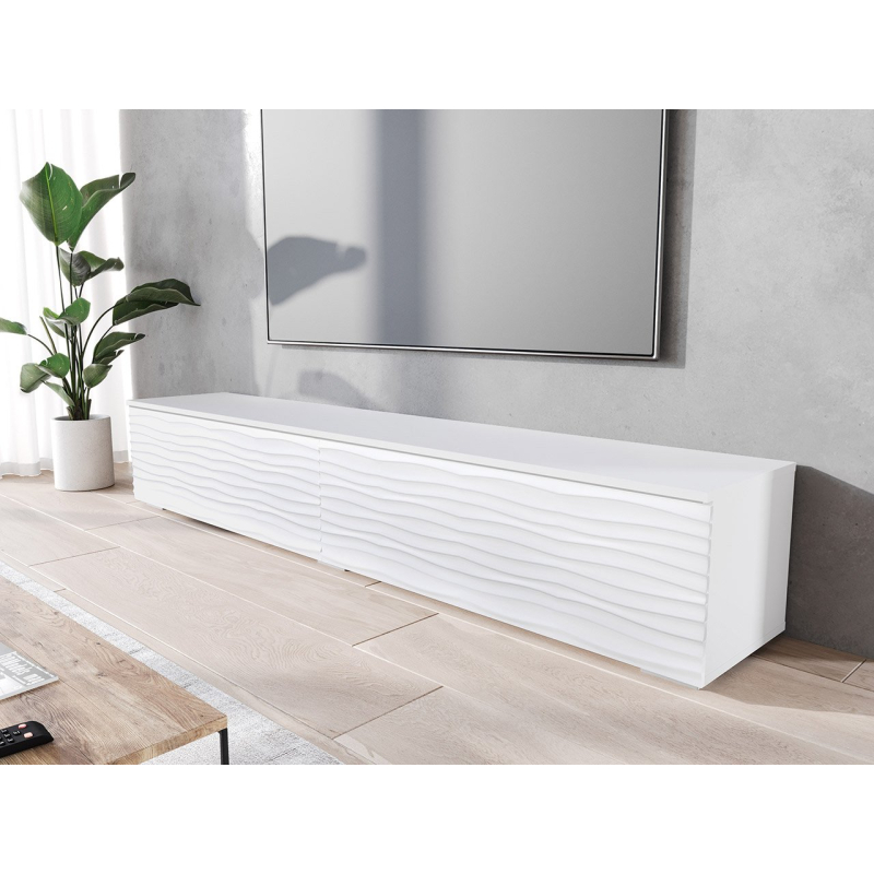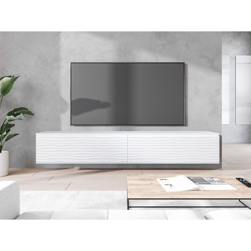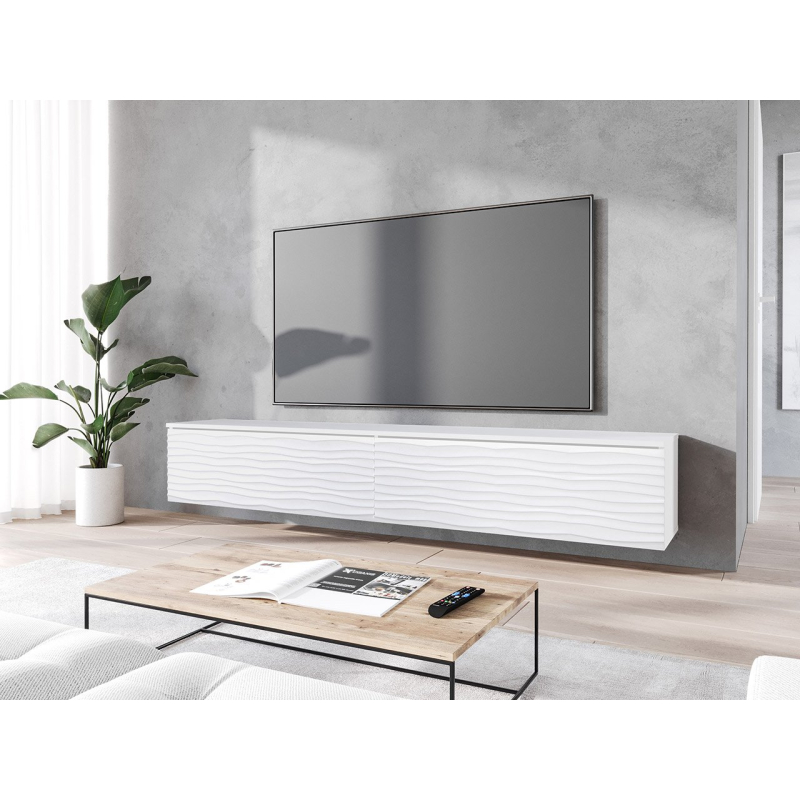 TV stolek/skříňka Dlone 180 MDF stylově doplní prostor vašeho obývacího pokoje. Můžete si jej dokonale přizpůsobit svým preferencím aranžování. Můžete jej položit na zem nebo zavěsit na zeď. Stolek/skříňka nemá žádné úchyty, což mu dodává minimalistický vzhled.