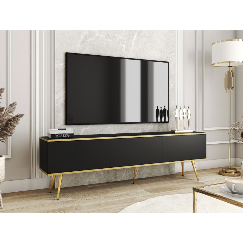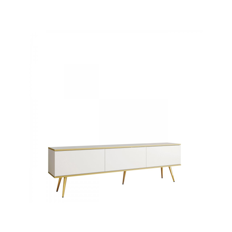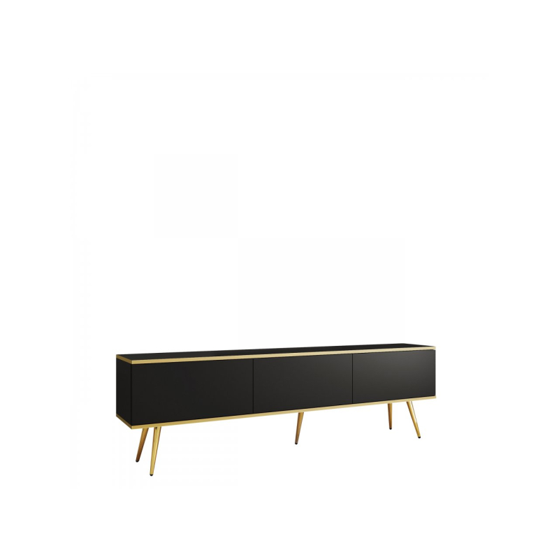 Vyberte si eleganci do svého obývacího pokoje a vyberte si TV skříňku Oanisew I! Vyzařuje eleganci a moderní styl. Tlumená barva předních dílů dokonale ladí se zlatými prvky. Vysoké kovové nohy vám umožní udržet pořádek pod nábytkem a navíc podepřít celou konstrukci.