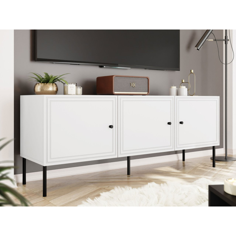 3D TV skříňka Gudzup Bis 150 je skvělý nápad, jak dodat interiéru svěžest, lehkost a funkčnost. Ideální kus nábytku k doplnění prostoru pod TV. Univerzální design zapadne do jakéhokoli uspořádání místnosti. Minimalistický vzhled byl obohacen o jemné, decentní ozdobné vložky.