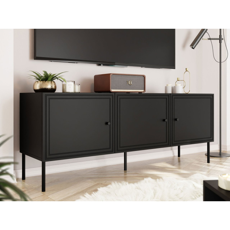 Praktičnost přidává také TV skříňka na nožičkách. Díky němu získáte další úložný prostor a širokou stolovou desku pro vystavení oblíbených dekorací či suvenýrů z dovolené.