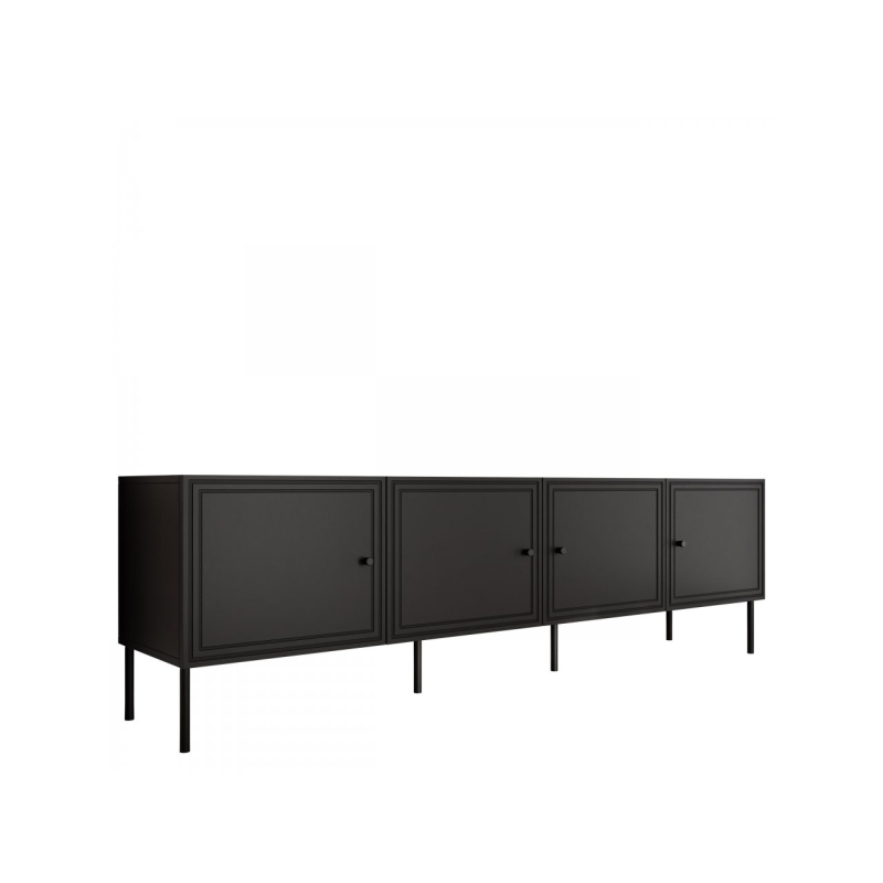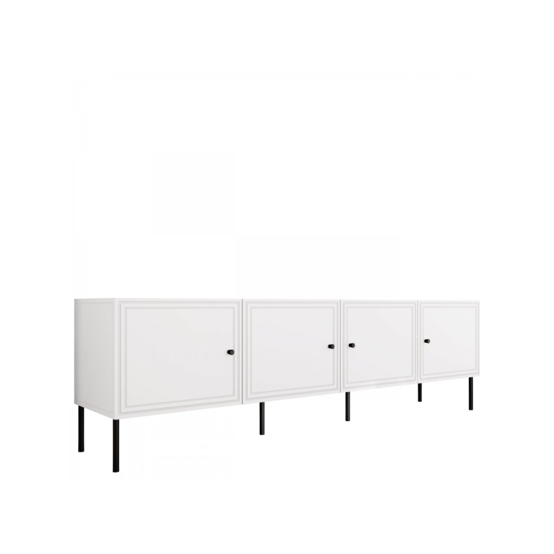 Nadčasový styl TV skříňky dokonale zapadá do oblíbeného trendu moderního klasického designu. Jemné frézování viditelné na čelech a rovné kovové nohy dodají každému prostoru charakter.