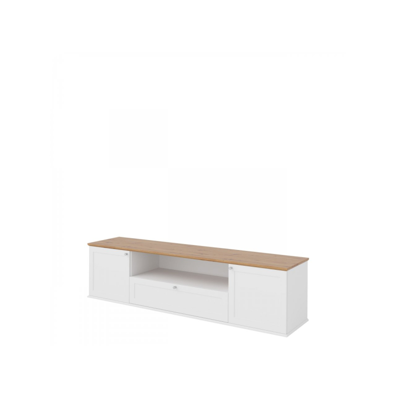 Tlumený vzhled TV skříňky Fritkit 2D1SZ do obývacího pokoje je dokonalým způsobem, jak zařídit moderní interiér. Model bude také ideální pro projekty s atmosférickým provensálským stylem. Výběrem tohoto typu TV skříňky vám vznikne prostor pro audiovizuální techniku a další potřebné doplňky.