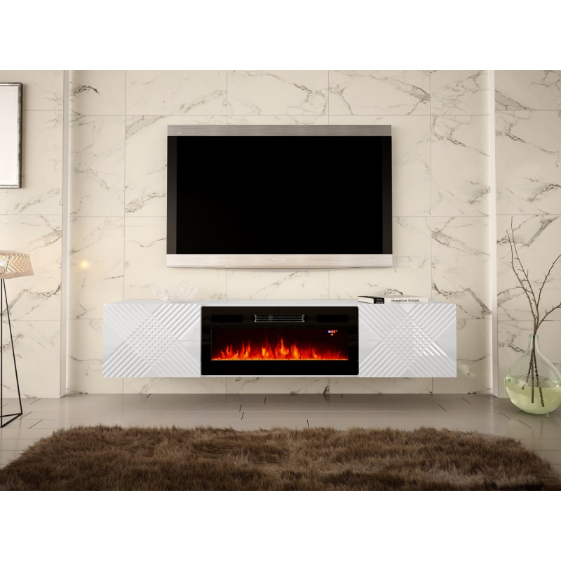 Dvoudveřová TV skříňka s elektrickým krbem Madrielle 180 cm přináší pohodovou atmosféru do obývacího pokoje. Realistický LED plamen zpříjemní váš volný čas strávený v obýváku a vyzařuje z něj útulnost a teplo. Je příjemné být obklopen takovou TV skříňkou. Jeho předností je módní design založený na stylových barvách. Zdobená frézovaným vzorem působí avantgardně.