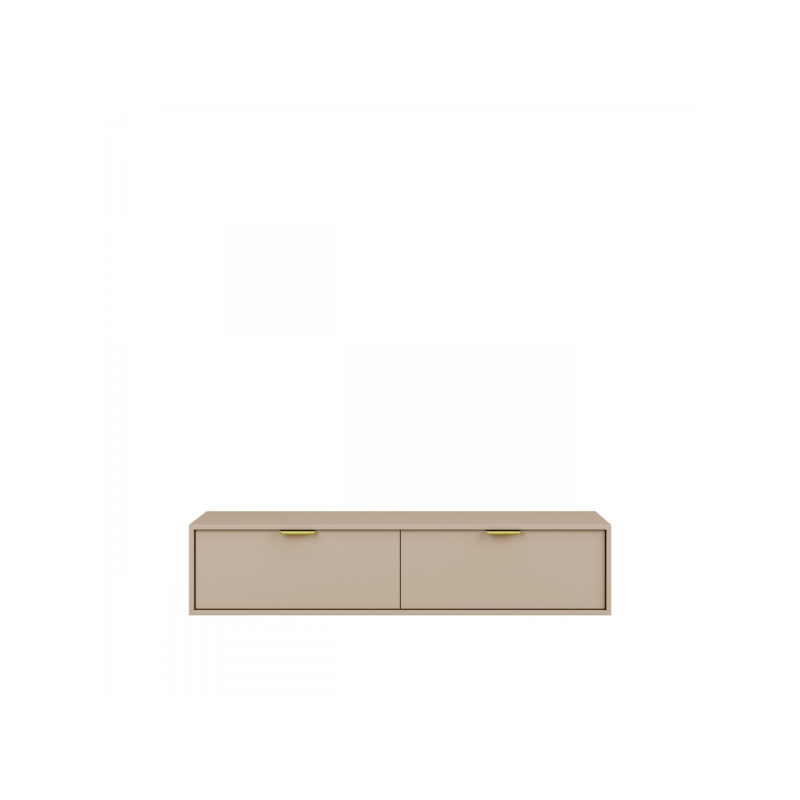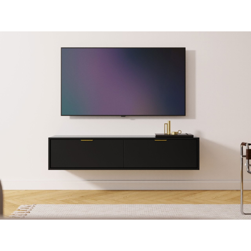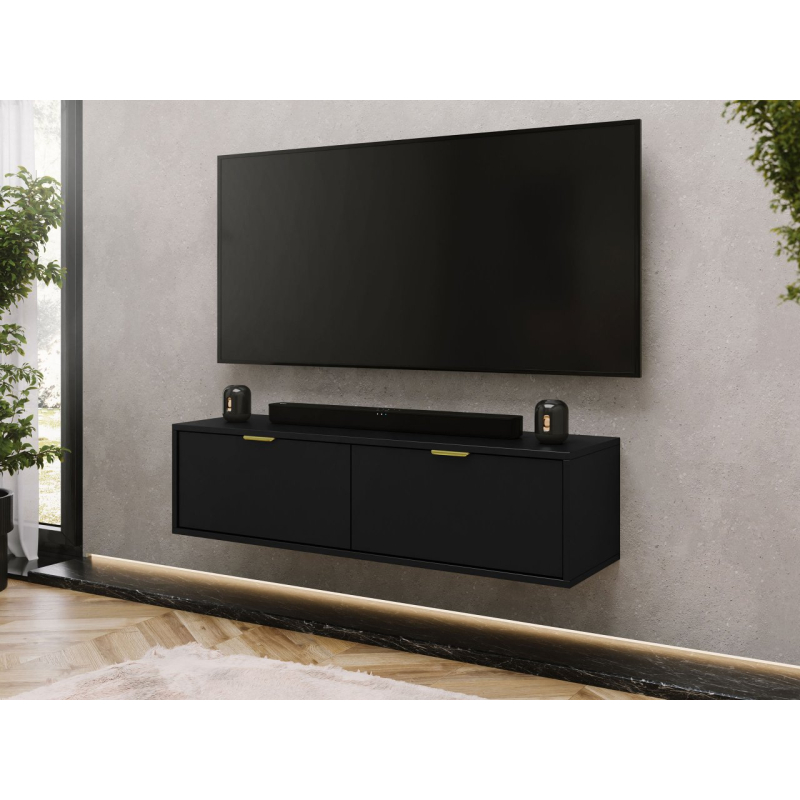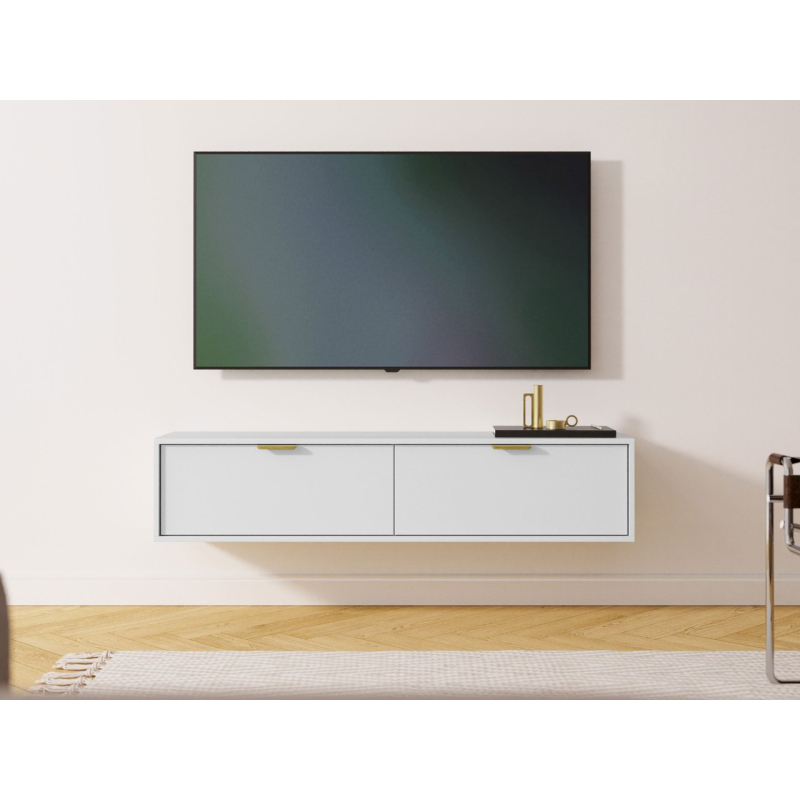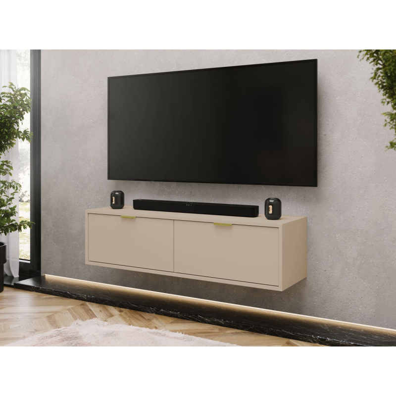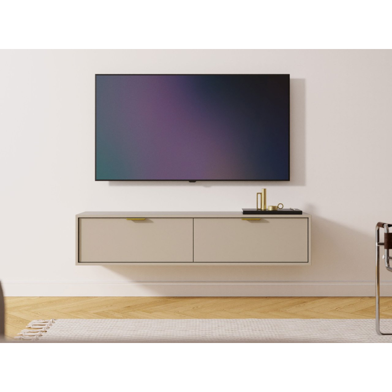 Hledáte praktický doplněk do vašeho obývacího pokoje? TV skříňka Kwezal 140 je skvělou volbou. Model má minimalistickou formu, takže snadno zapadne do každého prostoru a aranžmá. Skvěle se bude hodit do interiérů v klasickém, moderním i minimalistickém stylu. Závěsná TV skříňka nezabere mnoho místa, ale nabízí dostatek úložného prostoru. Má dva prostorné úložné prostory, které se otevírají pomocí plynových pružin. Tato varianta se vyznačuje jemnými zlatými úchyty.