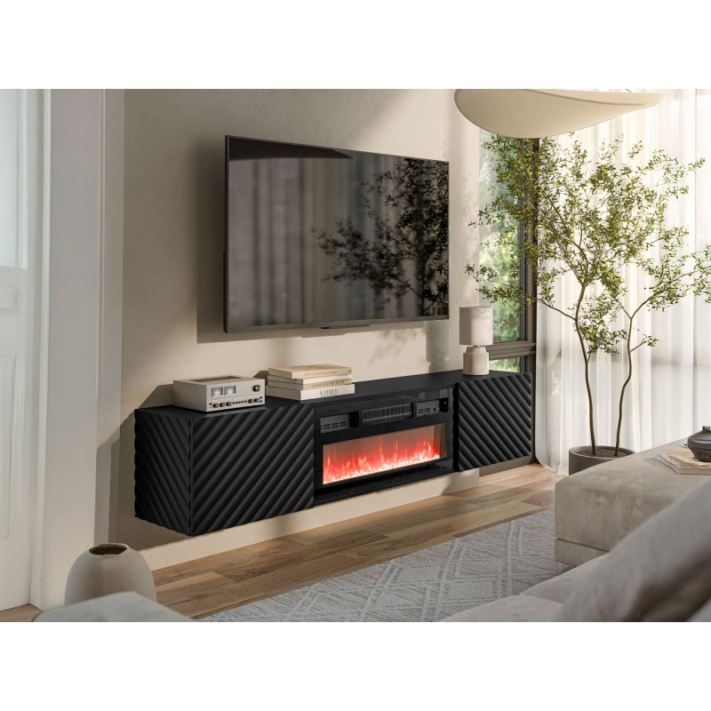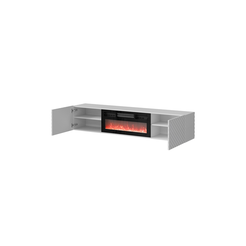 Jednoduchá forma obohacená o jemné dekorace a elektrický krb. TV skříňka s krbem Josito vytvoří útulnou atmosféru ve vaší domácnosti. Jedná se o praktické řešení, které doplní TV prostor. Přidá jedinečný design a funkčnost. Nábytek vyniká vkusnými dekorativními dekoracemi, které dodávají punc prestiže a luxusu. Model bude perfektně fungovat v minimalistických a moderních prostorách. TV komoda díky vestavěnému krbu zútulní interiér a zpříjemní večerní relax.