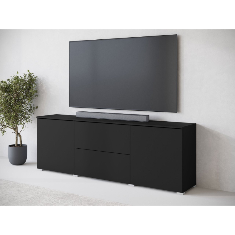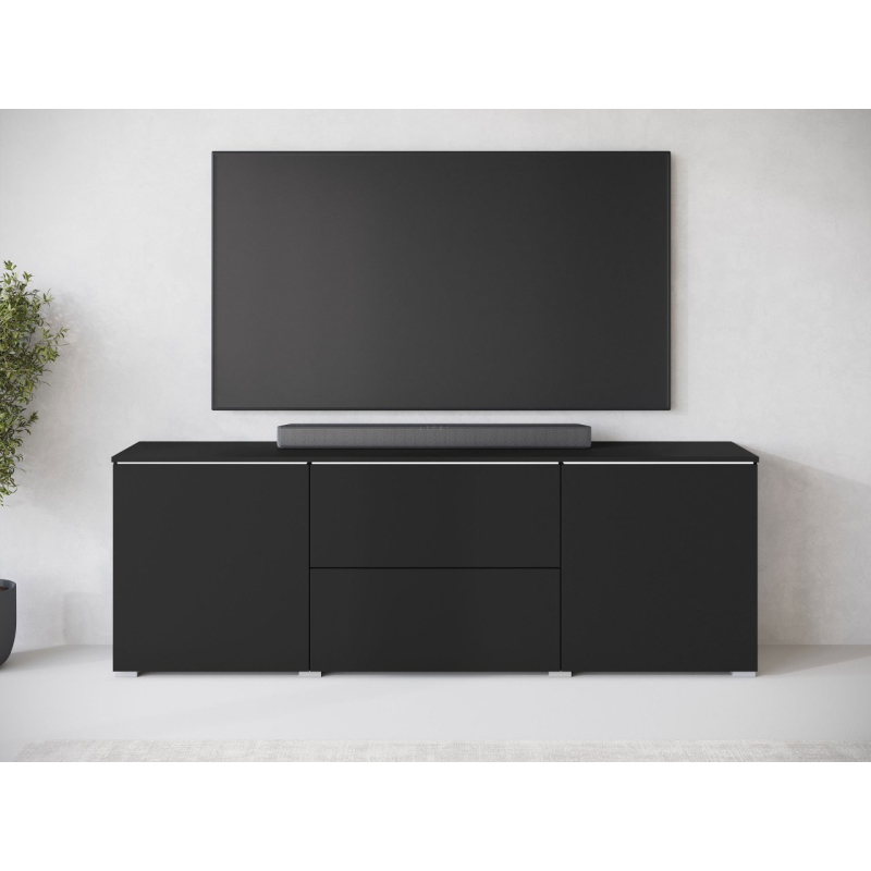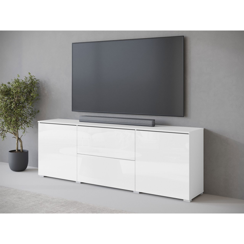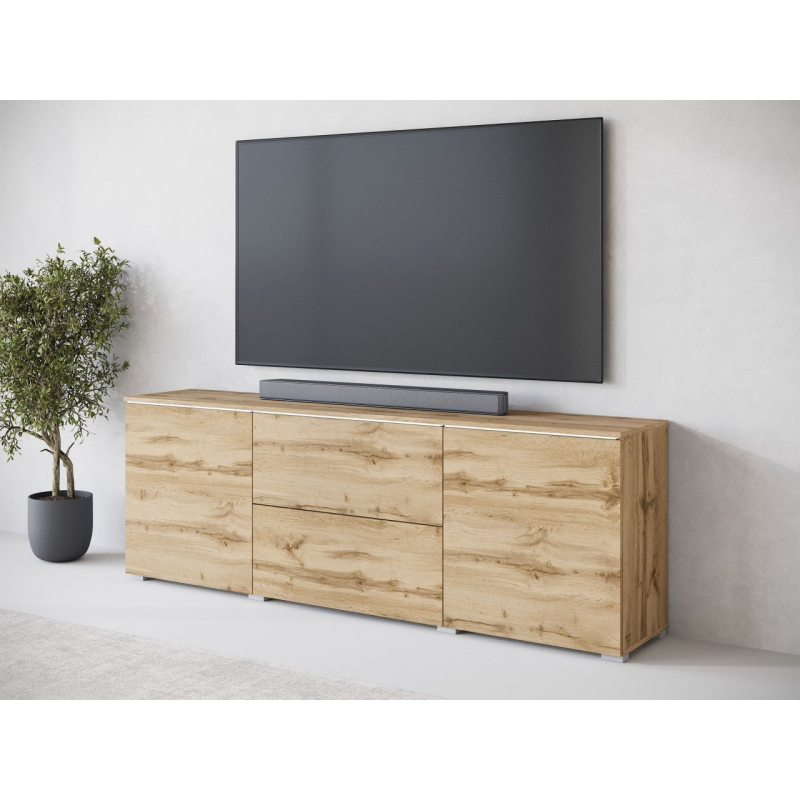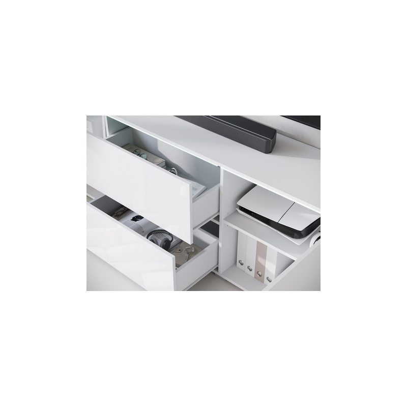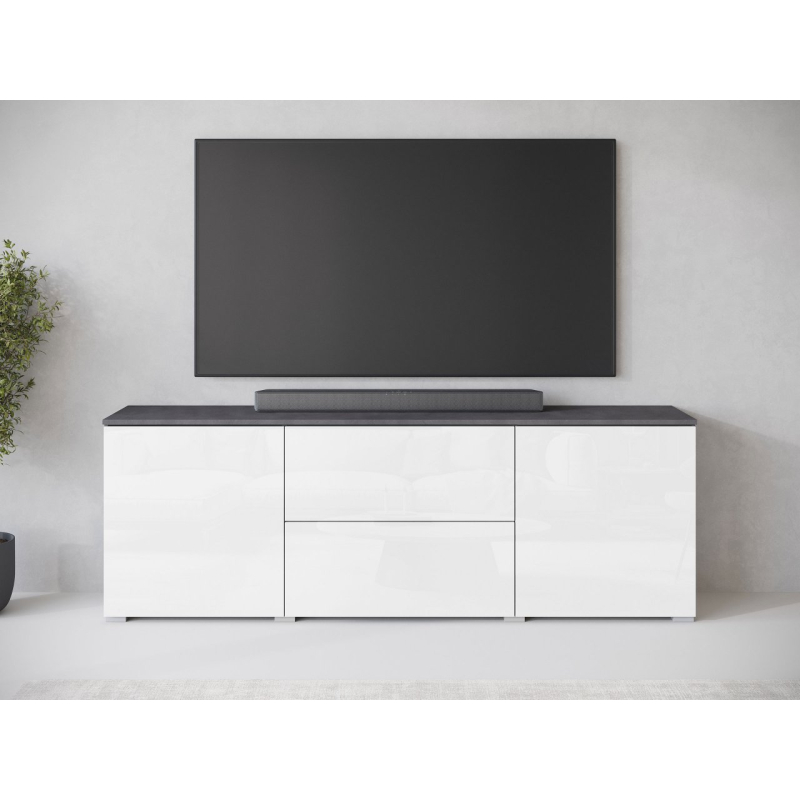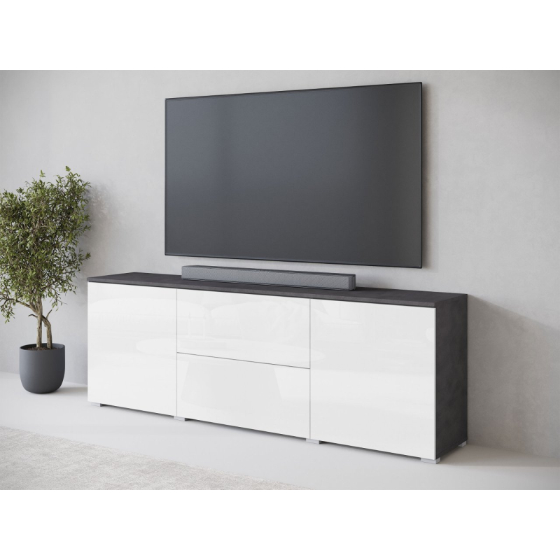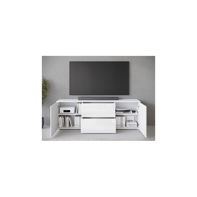 Jednoduchý tvar obohacený o čela v lesklém nebo matném provedení, to nabízí TV skříňka Sawoti 181. Je to ideální způsob, jak zorganizovat domácí prostor pro TV. Model je vybaven dvěma prostornými zásuvkami a policemi ukrytými za dvířky. Moderní vzhled TV skříňky ovlivňuje také absence úchytek. Přístup k předmětům uvnitř je možný díky systému push to open.
