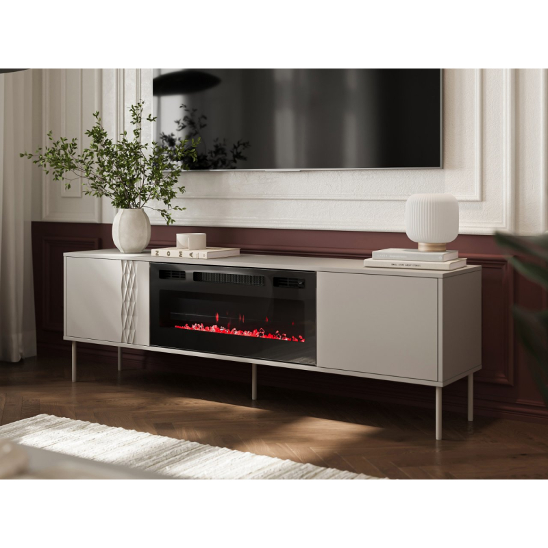 Minimalistický design TV skříňky Firtus 180 EF s jemnými dekoracemi jistě skvěle doplní každý prostor. Ale skutečným hrdinou je elektrický krb skrytý uvnitř. Rozhodněte se, jestli chcete vytápět místnost funkcí vytápění s regulací teploty nebo si jednoduše užít útulný výhled na oheň. Žádný kouř, žádný nepořádek - čisté pohodlí na dosah ruky. Televizní stolek nabízí také prostorné police, do kterých se vejde vaše vybavení, kabely a cokoli jiného, co chcete mít uspořádané.