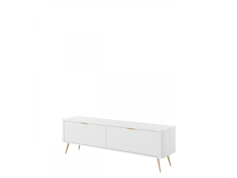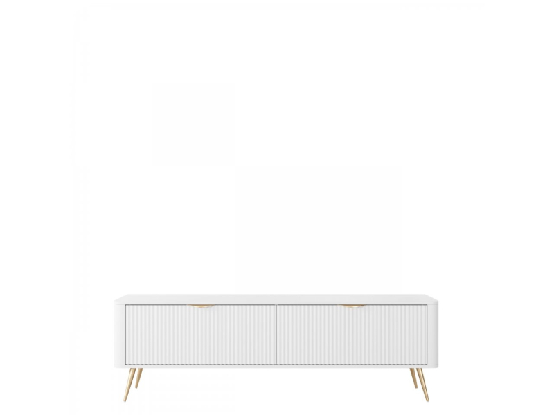 Vkusně zařízený televizní koutek zpříjemní čas strávený sledováním vašich oblíbených filmů a televizních seriálů. TV skříňka Wosial 163 2D zvyšuje estetickou přitažlivost tohoto prostoru. Módní drážkovaná čela dodávají elegantní nádech, doplněný stylovými zlatými úchytkami a nohami. Jde o harmonickou kompozici, která vypadá krásně ve formálním obývacím pokoji. Kromě vylepšení dekoru zvyšuje také jeho funkčnost.