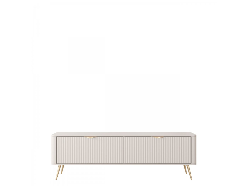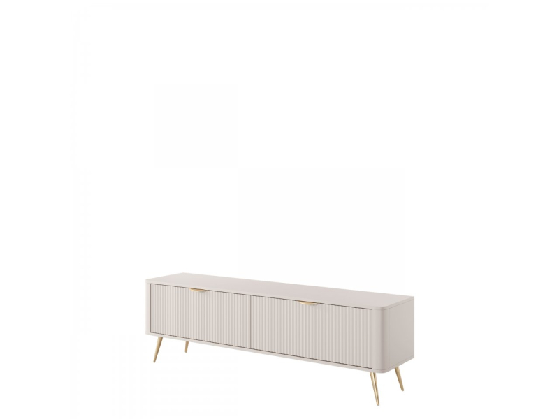 Vkusně zařízený televizní koutek zpříjemní čas strávený sledováním vašich oblíbených filmů a televizních seriálů. TV skříňka Wosial 163 2D zvyšuje estetickou přitažlivost tohoto prostoru. Módní drážkované přední části dodávají elegantní nádech, doplněné stylovými zlatými úchyty a nohama. Je to harmonická kompozice, která vypadá krásně ve formálním obýváku. Kromě vylepšení dekorace zvyšuje také její funkčnost.