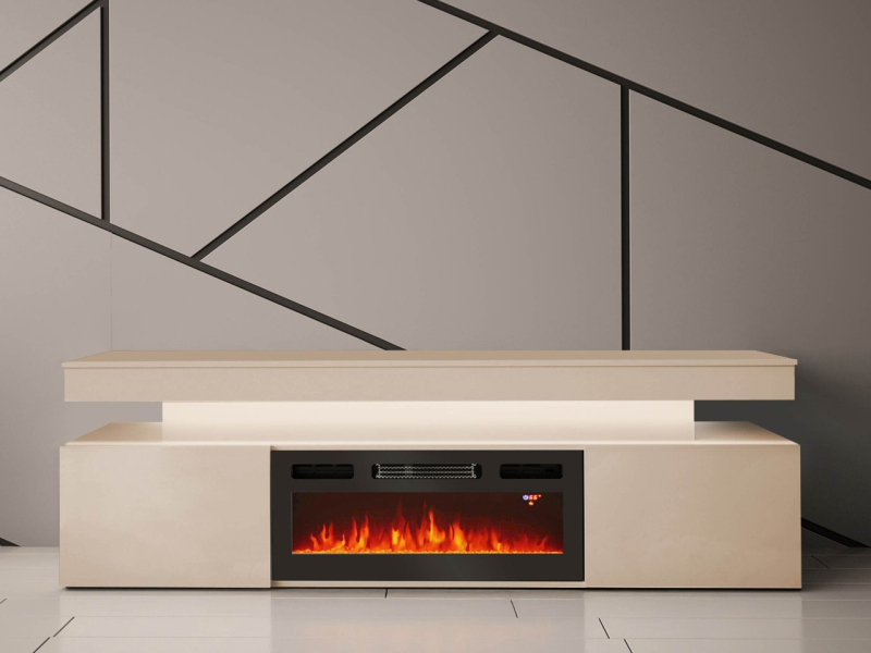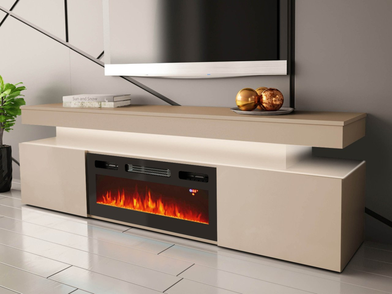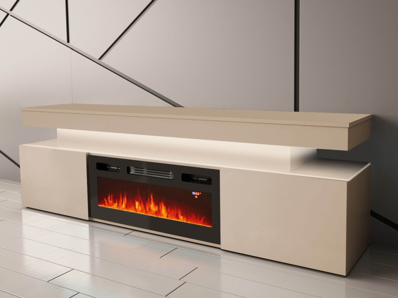 Dalším lákadlem TV skříňky je její elektrický krb. Vyzařující realistické plameny vytváří v obýváku útulnou atmosféru. Díky samostatné funkci vytápění věrně napodobuje tradiční krb, což potvrzuje jeho praktičnost v každé domácnosti.