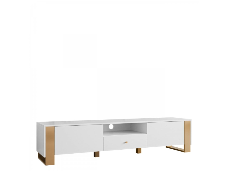 Perfektní doplněk do televizního koutku vašeho obývacího pokoje. Objevte moderní televizní stolek Nalker 2K1SZ, který vás potěší nejen svým vzhledem, ale i praktickými vlastnostmi. Jeho světlou barvu dokonale doplňují zlatavé nohy. Prostorná horní deska poskytuje prostor pro drobné ozdoby, zatímco otevřená police je perfektním základem pro set-top box nebo jiné multimediální zařízení.